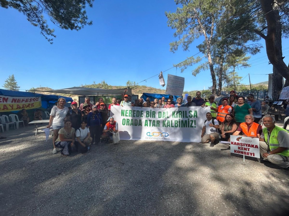 Ege Kent Konseyleri Birliği tarafından sosyal medyada yapılan açıklamada; “Limak ormanı katletmeye, İkizköylüler ve dostları direnmeye devam ediyor! Tüm yurttaşları Mücadeleye destek vermeye Akbelen’e Sahip Çıkmaya çağırıyoruz” denildi.