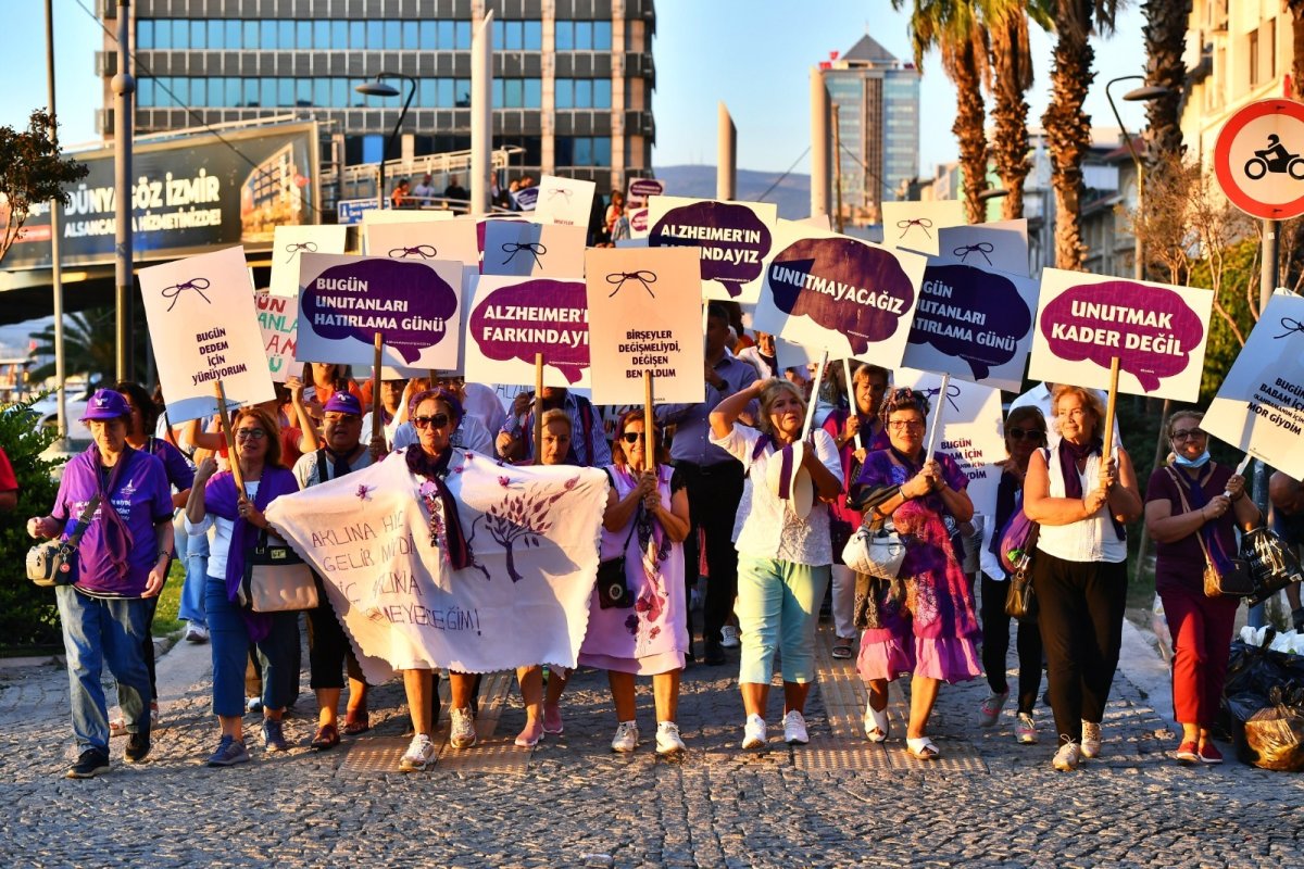 İzmir Büyükşehir Belediyesi Sağlık İşleri Dairesi Başkanlığı, alzheimer hastalığına dikkat çekmek ve farkındalık yaratmak amacıyla 21 Eylül Dünya Alzheimer Günü’nde Alzheimer Derneği İzmir Şubesi iş birliği ile yürüyüş yapıldı. Konak Pier önünden başlayan ve Tarihi Saat Kulesi’nde son bulan yürüyüşe dernek üyeleri, belediye çalışanları ve yurttaşlar katıldı. “Demansı tanı, alzheimeri tanı” temasıyla yapılan yürüyüşe katılanlar, üzerinde “Ninem beni unuttu, ben torunumu unutmayacağım”, “Aklına gelir miydi, hiç aklıma gelmeyeceğin”, “Bir şeyler değişmeliydi, değişen ben oldum” yazılı dövizler taşıdı.