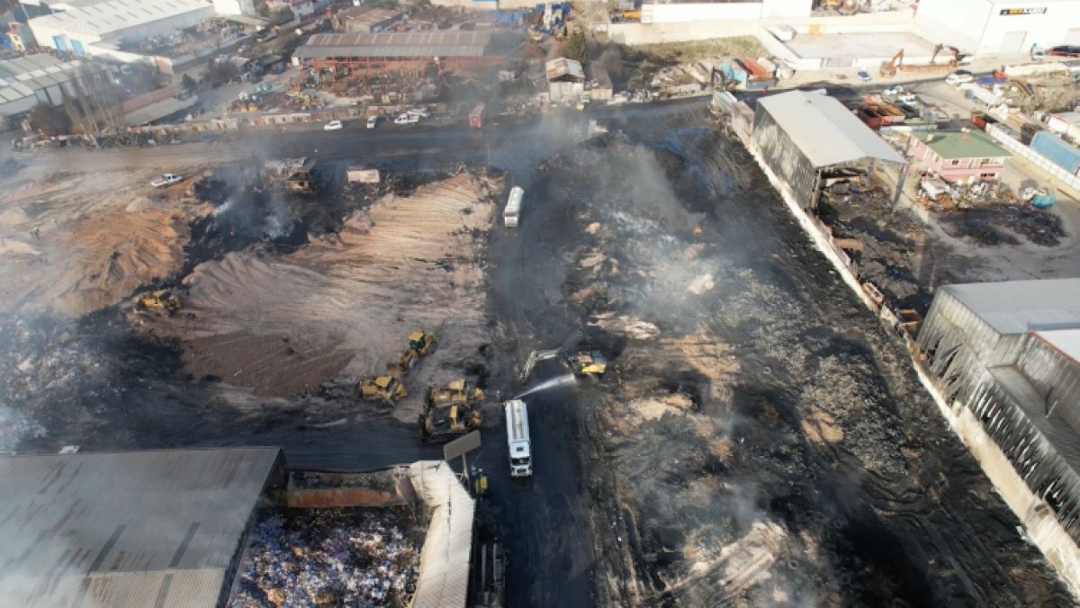 Ankara Hurdacılar Sitesi'nde araç lastikleri ve atıkların bulunduğu alanda çıkan yangın, 16 saatlik bir müdahalenin ardından kontrol altına alındı. Yangının bıraktığı hasar, gün ağarınca ortaya çıktı.