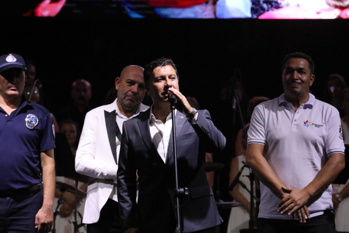 bütün belediye personeline teşekkür etti. Konserde konuşan Bodrum Belediye Başkanı Ahmet Aras, depremde yapılan çalışmalara değinirken şunları söyledi: “Biz Bodrum halkının vicdanını temsil ediyoruz. O yüzden Hatay, İskenderun, Malatya’da, tüm bölgede Bodrum halkının kadirşinas, hayırsever, yardımsever duygularını hayata geçirmeye çalıştık. Tabii ki bu güzel kardeşlerimle ve Bodrum gönüllüleriyle beraber. Ne mutlu ki sizlerden bugün bu güzel sözleri duyuyoruz. İnanın bütün verdiğimiz emek, ter, yorgunluk ve mücadelenin şu anda hepsi geçti. Yeni bir enerjiyle belki de yeni mücadelelere devam edeceğiz. Yılmaz’a bu güzel sözleri için teşekkür ediyorum.” Bodrum’un tüm özellikleriyle muhteşem bir coğrafya olduğunu sözlerine ekleyen Başkan Aras, şöyle devam etti: