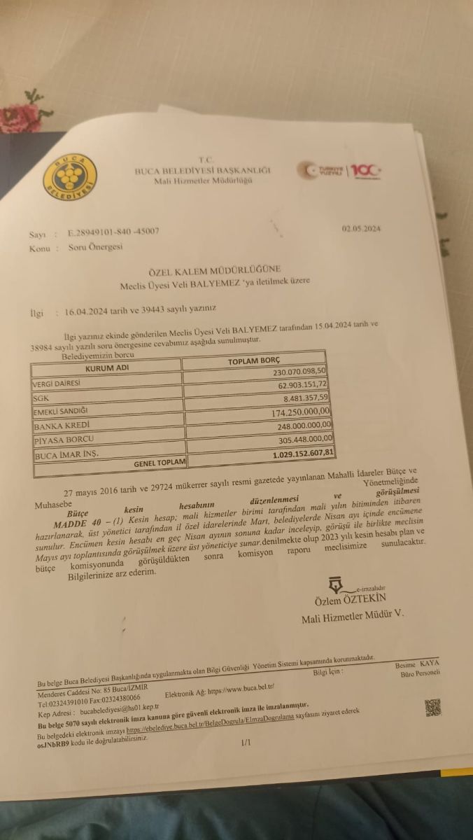 Görkem Duman Belediye Başkanlığındaki Borç 36 Gündür kamuoyuna açıklanmazken Buca Belediye Meclis Üyesş Veli Balyemez verdiği önergeden sonra Buca Belediyesinin kamuoyuyla paylaşılmayan Borcu Ortaya çıktı Teşekkürler Veli Balyemez