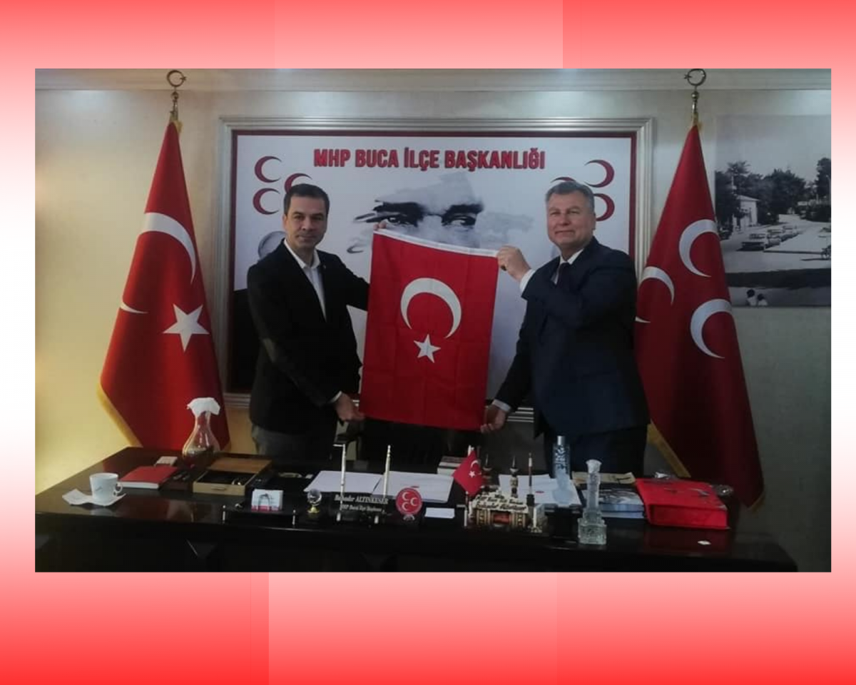Türk Hava Kurumu Buca Şube Başkanı, İzzet Atan ve kıymetli yönetimi;Buca ilçe binasında MHP Buca İlçe Başkanı Bahadır Altınkeser’i ziyaret etti. Türk Hava Kurumu Buca Şube Başkanı, İzzet Atan Başkan Altınkeser’e Türk Bayrağı hediye etti. Bu anlamlı ziyaretinden dolayı Başkan Altınkeser , İzzet Atan’a teşekkürlerini sundu.