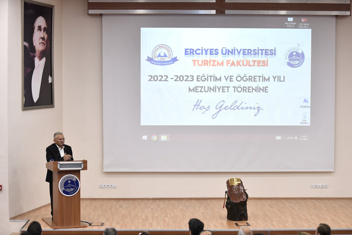 Kayseri Büyükşehir Belediye Başkanı Dr. Memduh Büyükkılıç, Erciyes Üniversitesi (ERÜ) Turizm Fakültesi tarafından düzenlenen 2022-2023 Eğitim Öğretim Yılı 14’üncü Dönem Mezuniyet Töreni’ne katıldı.