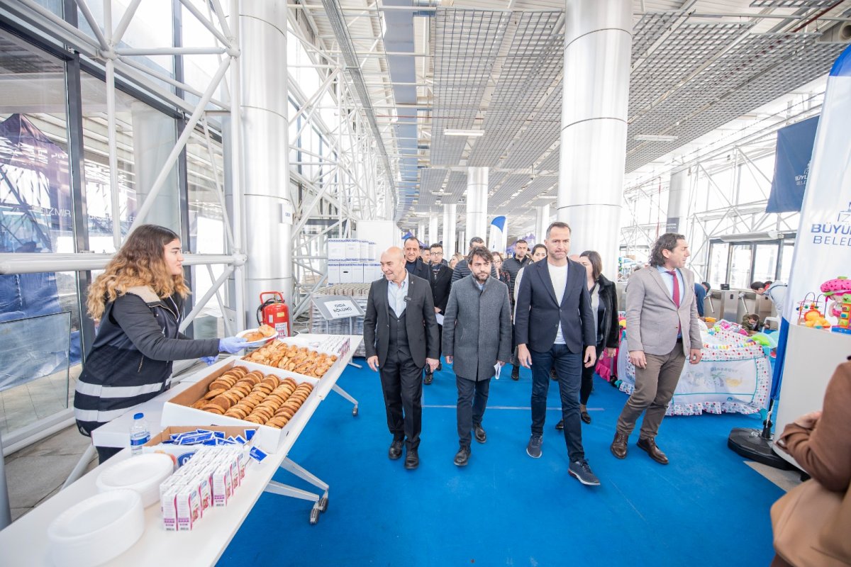 İzmir Büyükşehir Belediye Başkanı Tunç Soyer, Kahramanmaraş merkezli 11 ili etkileyen depremin ilk gününden bu yana yardımların toplandığı Fuar İzmir'i ziyaret etti. Fuar İzmir'e gelen bağışların ayrıştırılmasında gönüllülerden destek beklediklerini ifade eden Başkan Tunç Soyer, “İzmirlileri bu dayanışmanın parçası olmaya davet ediyorum” dedi.