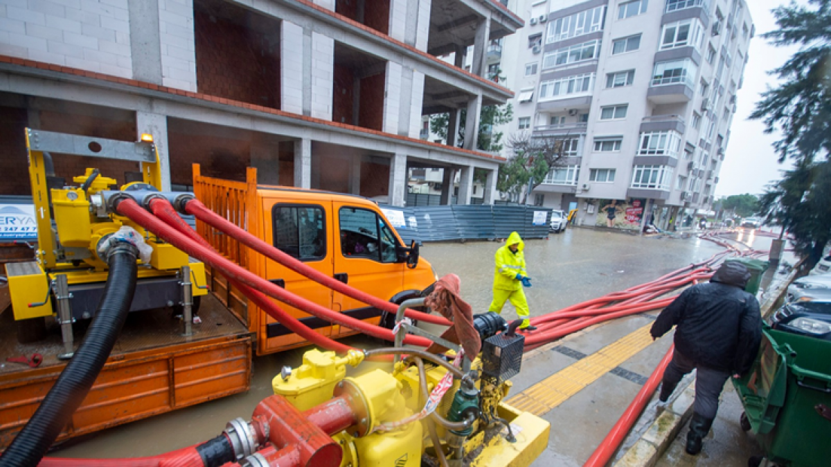 Gece boyu süren aşırı yağışın ardından İzmir Büyükşehir Belediyesi’ne ait ekipler hayatı normale döndürmek için çalışmalarını sürdürüyor. Yoğun çabaların ardından Büyükşehir Belediyesi ekipleri kentin ana arterlerini trafiğe açtı. İZSU, Fen İşleri ve itfaiye ekipleri kent içi trafik akışı için büyük önem taşıyan Altınyol ve Anadolu Caddesi’ne müdahale etti. Turan İstasyonu civarındaki su baskını nedeniyle Anadolu Caddesi’nde kesintiye uğrayan trafik, ekiplerin yoğun çalışması sonucu kontrollü olarak açıldı.