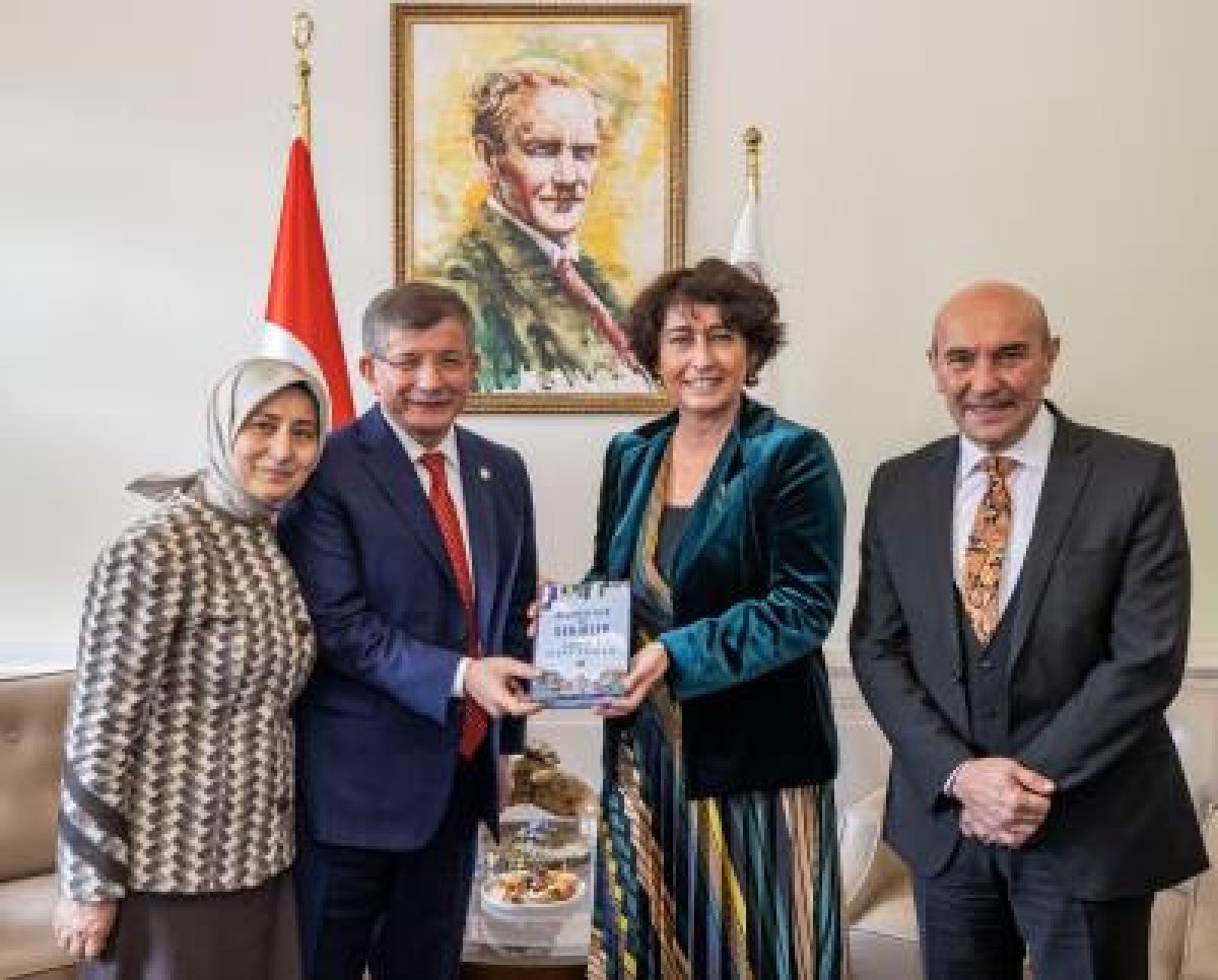 Toplantının ardından Başkan Tunç Soyer ve eşi Neptün Soyer, Gelecek Partisi Genel Başkanı Davutoğlu ve eşi Sare Davutoğlu’na zeytin fidanı ve topraktan yapılmış bir gramofon hediye etti. Davutoğlu ise Neptün Soyer’e İzmir ziyareti anısına “Medeniyetler ve Şehirler” adlı kitabını hediye etti. Neptün Soyer ve Sare Davutoğlu, Çetin Emeç Sanat Galerisi’ndeki Nezahat Sevim’in Mavi Düşler Geçmişten Geleceğe Nakış Sergisi’ni gezdi.