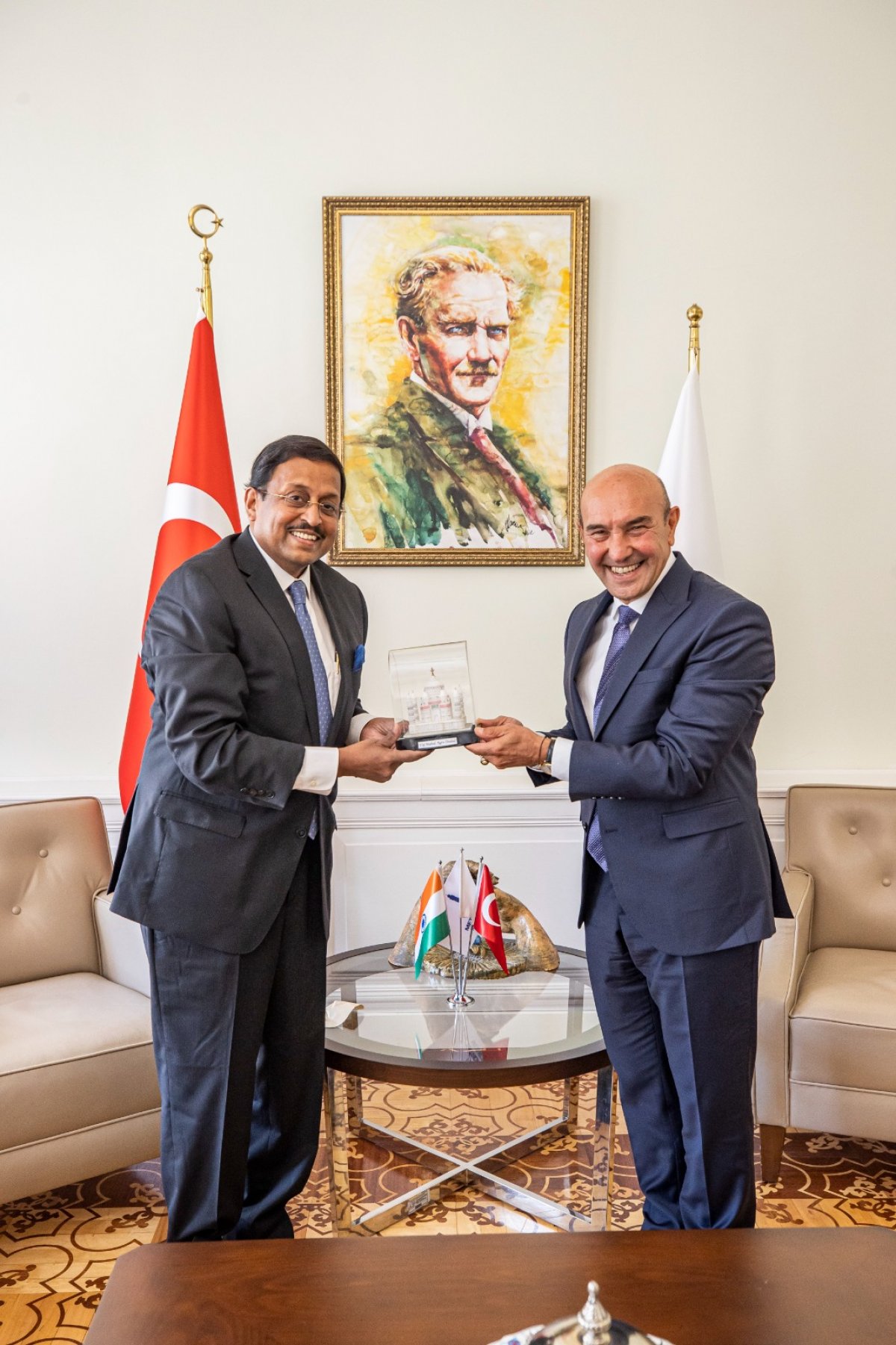 İzmir Büyükşehir Belediye Başkanı Tunç Soyer, Hindistan Ankara Büyükelçisi Sanjay Panda'yı makamında ağırladı. Bu yıl 90'ıncı kez düzenlenen İzmir Enternasyonal Fuarı'na da (İEF) katılım gösterecek olan Büyükelçi Panda ile Büyükşehir Belediye Başkanı Soyer iyi ilişkilerin bundan sonraki süreçte de devam etmesi temennisinde bulundu. İzmir'e ilk defa geldiğini ve kenti çok beğendiğini aktaran Panda, Kordon'dan çektiği günbatımı resmini de gösterdi. Panda, kalabalık bir heyet eşliğinde İzmir'e gelmeyi arzuladıklarını fakat koronavirüs pandemisinden dolayı Hindistan'da uygulanan çıkış yasakları sebebiyle bu düşüncelerini hayata geçiremediklerini belirtti.