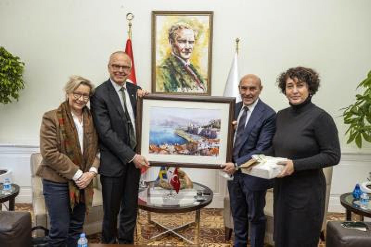 İzmir Büyükşehir Belediye Başkanı Tunç Soyer, İsveç’in Ankara Büyükelçisi Staffan Herrström’ü makamında ağırladı. Ziyarete İzmir Büyükşehir Belediye Başkanı Tunç Soyer’in eşi Neptün Soyer, Büyükelçi’nin eşi Karin Herrström, İzmir Büyükşehir Belediyesi Başkan Danışmanı Onur Eryüce, İstanbul Başkonsolosluğu İkinci Kâtibi Björn Jönsson ve siyasi müşavir Serkan Taş katıldı. İzmir’e ilk kez geldiğini ifade eden Büyükelçi Staffan Herrström “İzmir söylendiği kadar güzel bir şehirmiş. Sizlerle hem siyasi hem de kültürel açıdan ilişkilerimizi güçlendirmek adına iş birliği yapmaya hazırız” dedi.