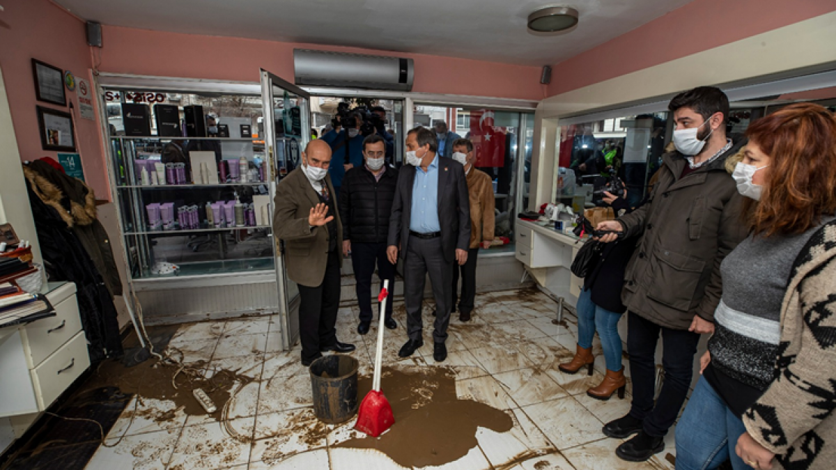Başkan Soyer selden zarar gören aileleri ve esnafı ziyaret etti