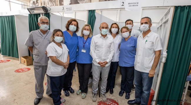 Başkan Soyer, 14 Haziran’da “Aşı Ol, Mavi İzmir İçin Umut Ol, Koruyucu Önlemlerini Sürdür” diyerek Mavi İzmir kampanyası başlattıklarını da hatırlatarak “Toplum Sağlığı Dairesi Başkanlığımız öncülüğünde gerek yüz yüze doğrudan eğitimlerle gerekse uzaktan eğitim modellerimizle yurttaşlarımızın COVID-19 ve aşı hakkında aklına takılan soruların yanıtlarını doğru ve güvenilir adreslerden alması için kılavuzluk ettik. Türkiye’deki vaka oranını 100 binde olarak gösteren risk haritasında İzmir’i 10’un altına düşürerek maviye boyamayı, bu konuda da öncü olmayı hedefliyoruz. Düşük riskli şehirler arasına girelim ki, önlenebilir can kayıpları son bulsun. Esnafımız kepenk kapatmasın. Çalışanlarımız sağlıkla işlerini sürdürebilsin. Çocuklarımız okullarında eğitim alsın. Karantina ve kısıtlama uygulamalarına gerek olmasın. İhtiyacı olan vatandaşlarımız hizmetlere rahatça ve sorun yaşamadan ulaşabilsin. Birbirimizi ve geleceğimizi korumak için ‘Tedbirli ol, aşı ol, Mavi İzmir’de özgür ol’ diyoruz” şeklinde konuştu.