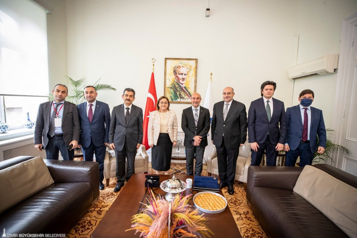 Türkiye Belediyeler Birliği (TBB) ve Gaziantep Büyükşehir Belediye Başkanı Fatma Şahin, İzmir Büyükşehir Belediye Başkanı Tunç Soyer'i ziyaret etti. Şahin ve TBB heyetini, Başkan Tunç Soyer ve İzmir Büyükşehir Belediyesi Genel Sekreteri Dr. Buğra Gökçe karşıladı. Ziyaretinde Şahin'e; Türkiye Belediyeler Birliği Genel Sekreteri Doç. Dr. Birol Ekici, Türkiye Belediyeler Birliği Genel Sekreter Yardımcısı Ramazan Özcan Yıldırım, Türkiye Belediyeler Birliği Basın Yayın Halkla İlişkiler Müdürü Nuraydın Arıkan, Gaziantep Bilişim A.Ş. Genel Müdürü Mete Deniz de eşlik etti.
