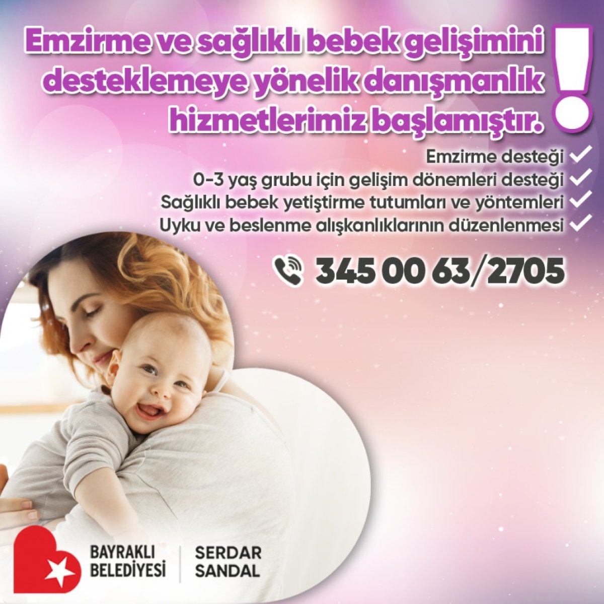 Bayraklı Belediye Başkanı Serdar Sandal, "Toplumumuzun en değerli varlıkları çocuklarımızın sağlıklı büyümesini ve gelişmesini desteklemek, belediye olarak öncelikli görevlerimizden biri. Bu nedenle, emzirme ve sağlıklı bebek gelişimi konusunda danışmanlık hizmeti vermeye başladık. Ailelerimizin bu süreçte doğru bilgi ve rehberlik alması, bebeklerin sağlıklı bir başlangıç yapmasında büyük önem taşıyor. Bu hizmetle, annelerimizin desteklenmesini, bebeklerimizin gelişim dönemlerinde en iyi şekilde yönlendirilmesini ve sağlıklı bir çocuk yetiştirme sürecinde ailelerimize yardımcı olmayı amaçlıyoruz" dedi.