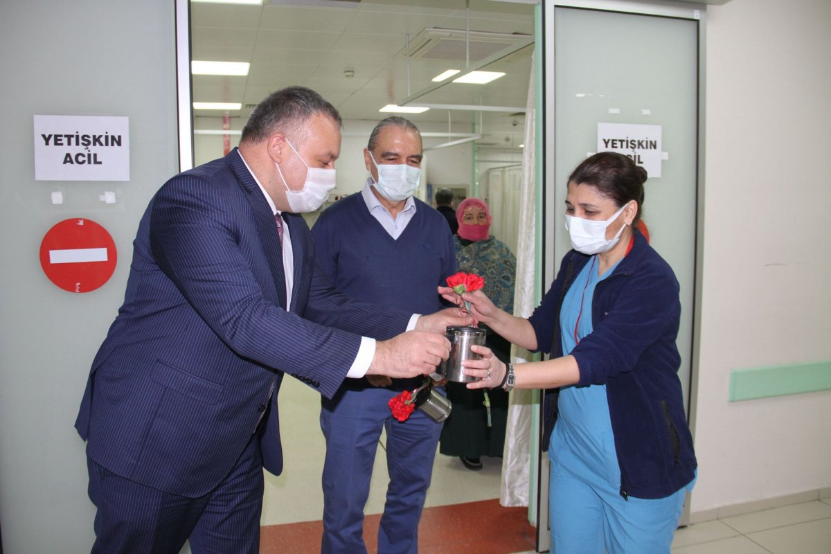 Buca Belediyesi'nden sağlık emekçilerine kırmızı karanfil