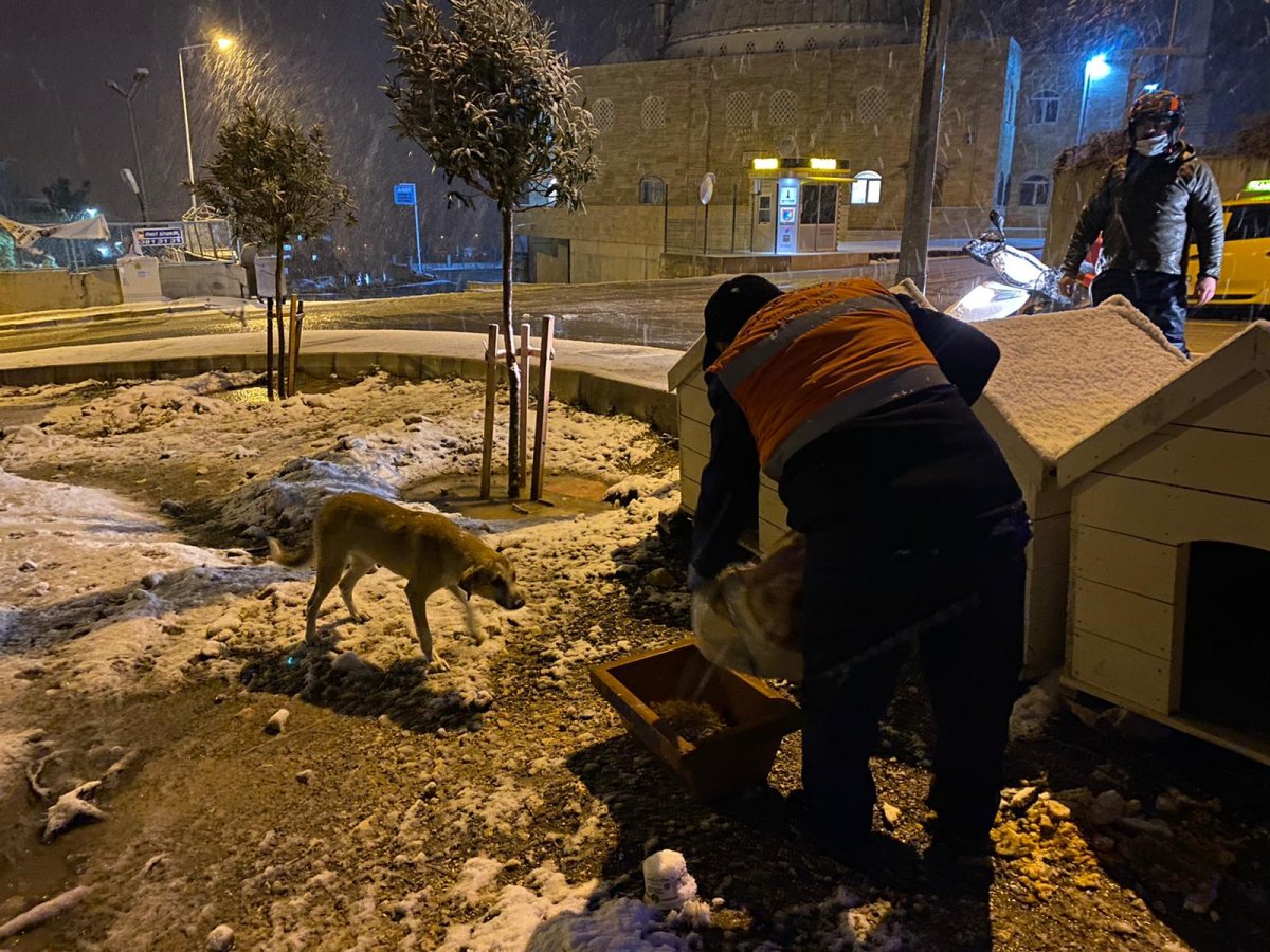 Kar altında kalan can dostlarını Buca Belediyesi unutmadı