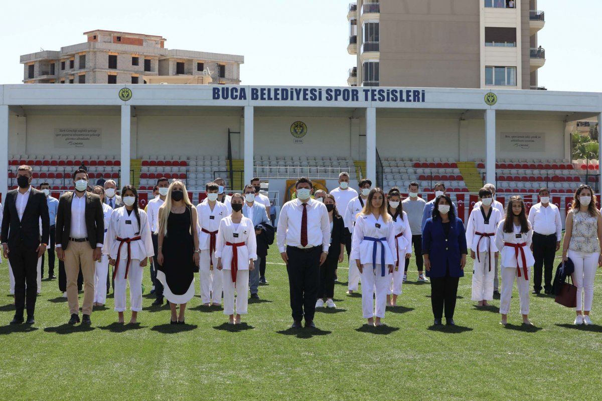 Çevik Bir Meydanı’ndaki Atatürk anıtına çelenk sunumuyla başlayan 19 Mayıs kutlamaları, Buca Belediyesi Yenigün Spor Tesisleri’ndeki etkinlikle devam etti. Buca Belediye Başkanı Av. Erhan Kılıç, tesislerde Buca Belediyesi Gençlik ve Spor Kulübü’nün sporcularıyla bir araya geldi. Tam kapanma sürecinin ardından kontrollü normalleşme denetimlerine uygun olarak gerçekleştirilen etkinlikte Buca’nın yetenekli sporcuları gösterilerini sergiledi.