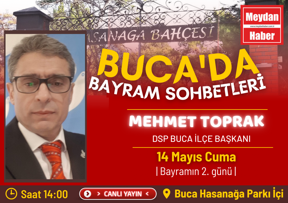 Bayramın 2. günü cuma saat 14:00 'da canlı yayın konuğumuz DSP Buca İlçe Başkanı Sayın Mehmet TOPRAK olacaktır. İyi seyirler.