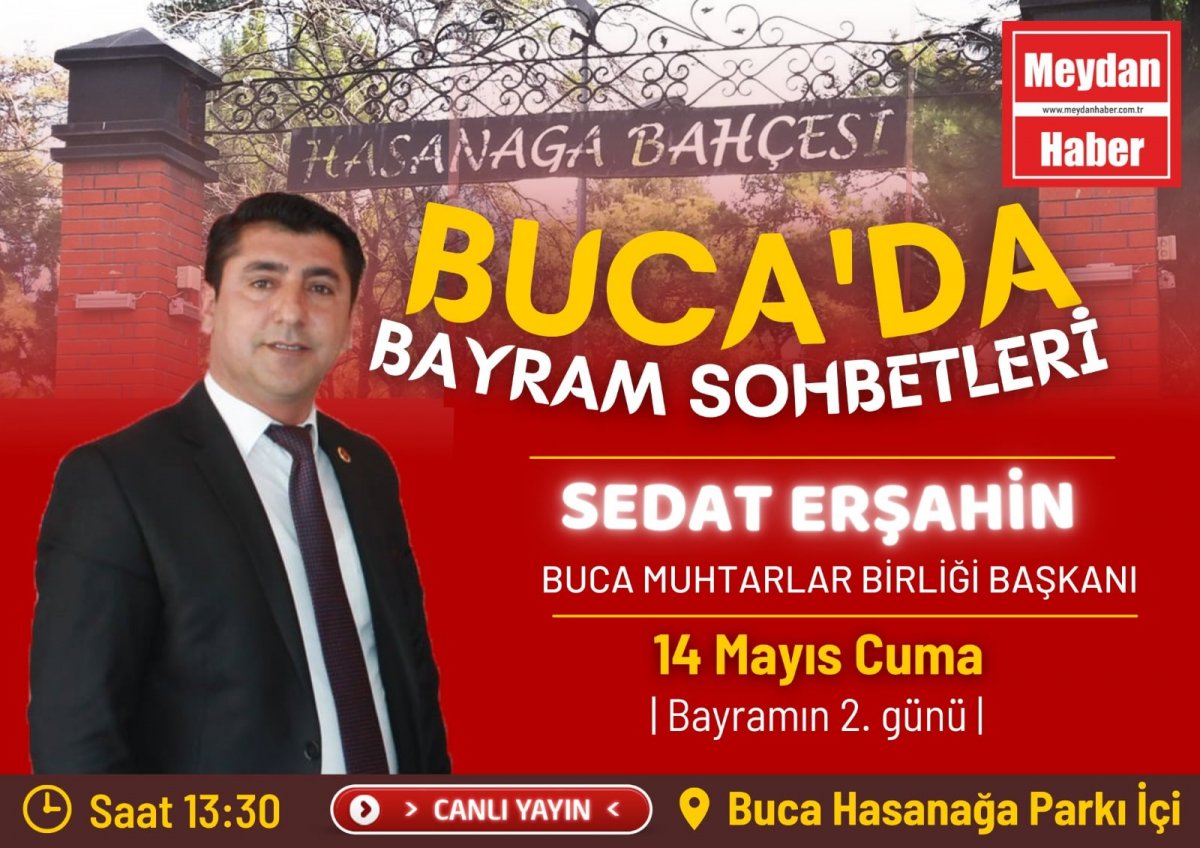 Buca Hasanağa Bahçesinde gerçekleşen 7 saat kesintisiz süren ve izleyici sayısıyla rekora koşan canlı yayınımızın konuğu Buca Muhtarlar Birliği Derneği başkanı sayın Sedat Erşahin'di. Program yapımcısı Nur Ergül'ün konuğu olan Sedat Erşahin gündemi değerlendirdi. Samimi bir sohbet gerçekleştiren Erşahin, bayram mesajını canlı yayınımızda izleyenler ile paylaştı.