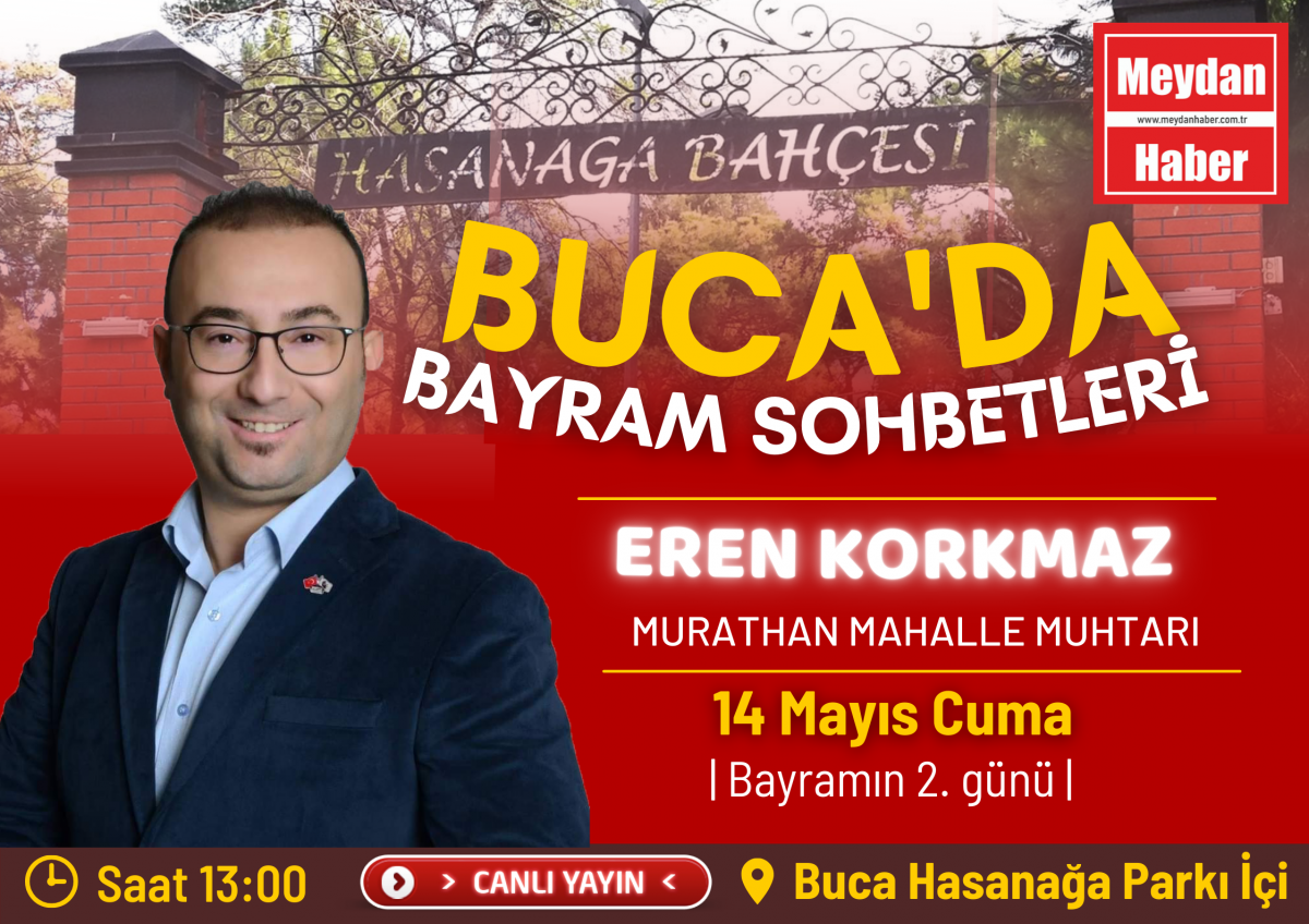 Buca Hasanağa Bahçesinde gerçekleşen 7 saat kesintisiz süren ve izleyici sayısıyla rekora koşan canlı yayınımızın konuğu Murathan mahallesi muhtarı sayın Eren Korkmaz'dı. Program yapımcısı Nur Ergül'ün konuğu olan Eren Korkmaz gündemi değerlendirdi. Samimi bir sohbet gerçekleştiren Korkmaz, bayram mesajını canlı yayınımızda izleyenler ile paylaştı.