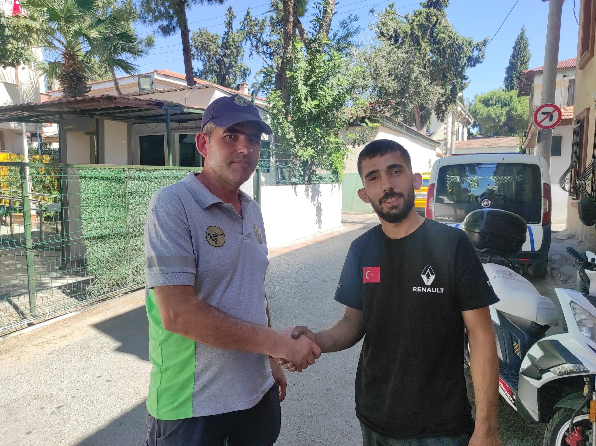 Buca Belediyesi Park ve Bahçeler Müdürlüğü’nde çalışan Serkan Akdoğan, Mustafa Eren Parkı’ndaki rutin görevi esnasında içinde Veysel Şeker’in dükkan kirasının olduğu kayıp cüzdanı bulunca en yakın polis merkezine götürdü. Buca Polis Merkezi Amirliği’ndeki memurların kendisine ulaşmasıyla işten izin alıp cüzdanını teslim almaya gelen Şeker, “Böyle insanlar da varmış” diye teşekkür etti.