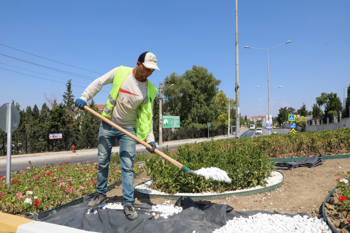 dikimini yapan ekipler, sıcak havaya rağmen ana arterlerden refüjlere kadar olan bütün
