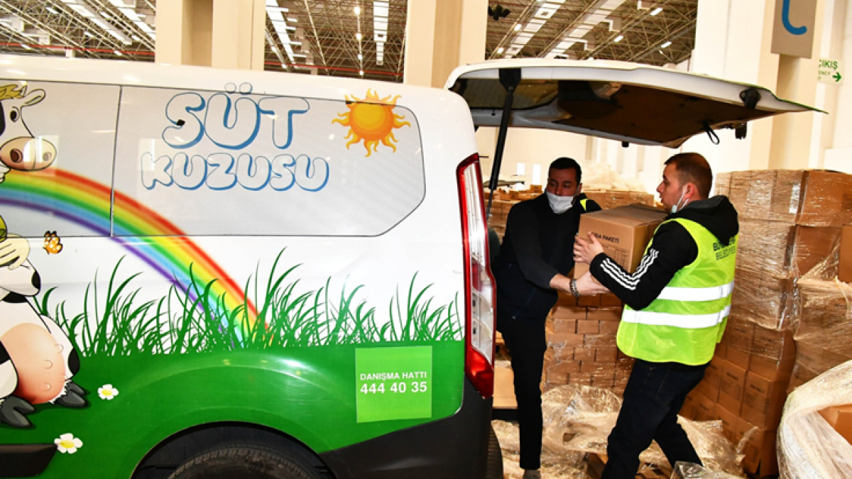 İçerisinde ayçiçek yağı, pirinç, makarna, çay, toz şeker, un ve zeytin bulunan gıda kolileri, 30 ilçenin tamamında dağıtılıyor. Metropol ilçelerde Sosyal Hizmetler Dairesi Başkanlığı, kırsal ilçelerde de İzmir Büyükşehir Belediyesi Yerel Hizmetler Şube Müdürlükleri üzerinden yardımlar yurttaşlara ulaştırılıyor