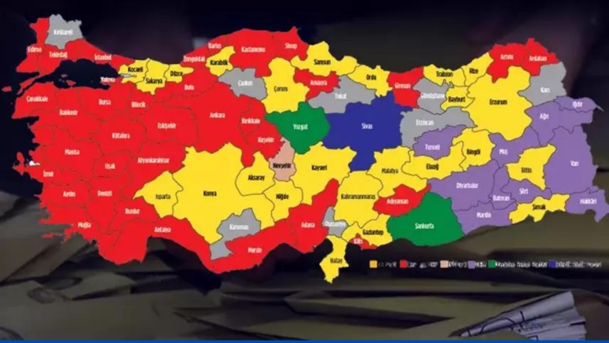 Türkiye'de 61 milyon 441 bin 880 seçmen, yerel yöneticilerini belirlemek için sandık başına gitti. Seçim sonuçları haritadaki renklere de yansıdı. İşte büyükşehirlerde oluşan son durum...35 İLİ CHP, 24 İLİ AK PARTİ ALDI