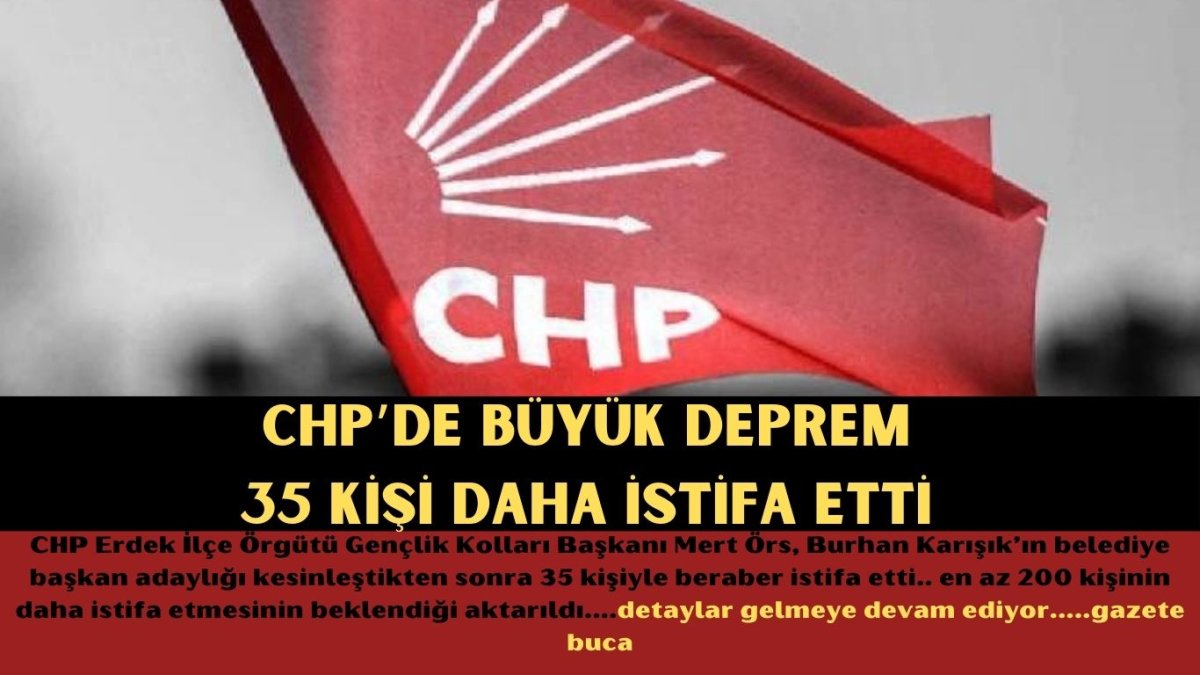 CHP Erdek İlçe Örgütü Gençlik Kolları Başkanı Mert Örs, partisinden istifa ettiğini duyurdu. Mert Örs’ün beraberinde 35 kişi daha partisinden istifa ederken, en az 200 kişinin daha istifa etmesinin beklendiği öğrenildi.