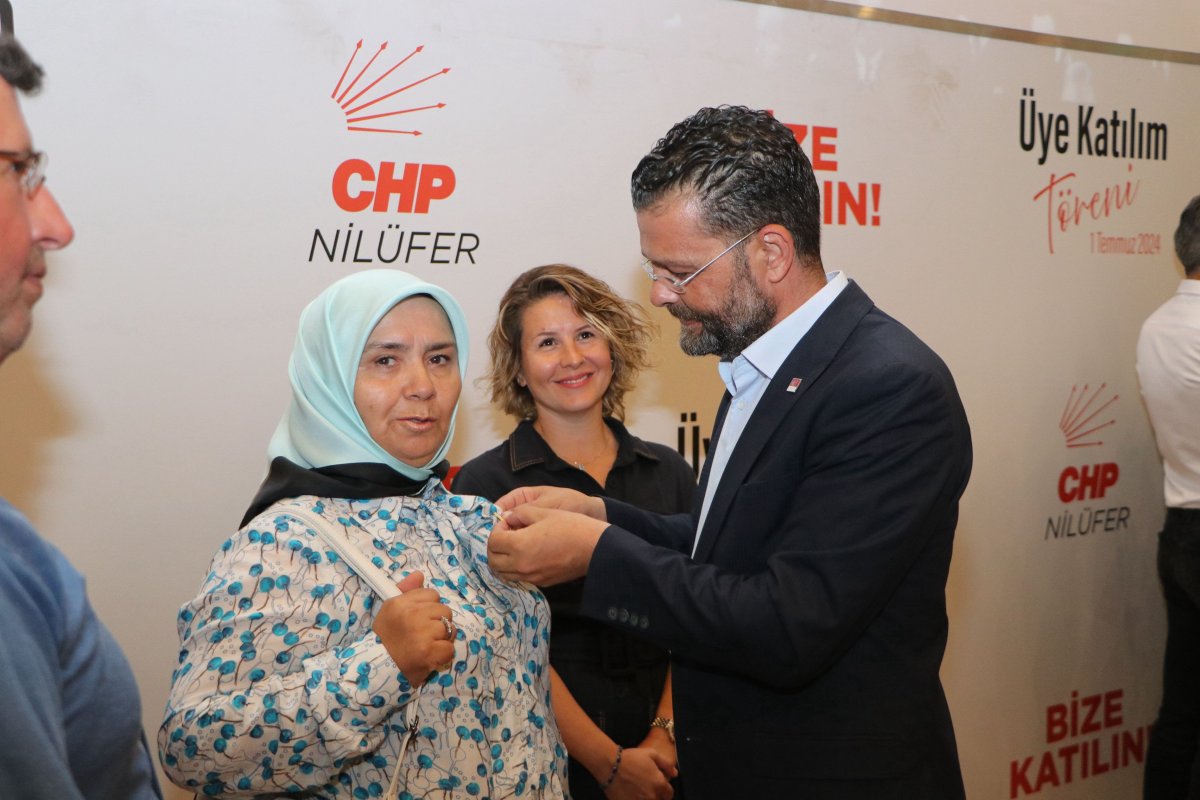 Nilüfer İlçe Başkanı Özgür Şahin, törende yaptığı konuşmada yeni üyelerin partinin gücüne güç katacağını vurgulayarak, "Bu güzel ailenin bir parçası olduğunuz için çok mutluyum. Nilüfer'imiz için hep birlikte daha büyük başarılar elde edeceğimize inancımız tamdır" dedi.
