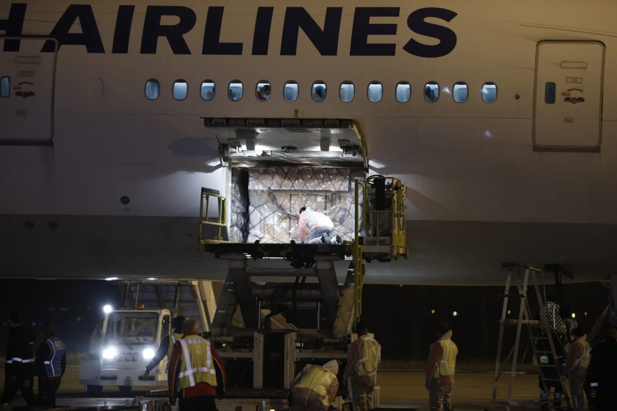 Türkiye saati ile 19.50'de Çin'in başkenti Pekin'deki havalimanından hareket eden uçağın Ankara'ya inişi ile aşıların bulunduğu konteynerler, uçaktan alınarak depolara taşındı.