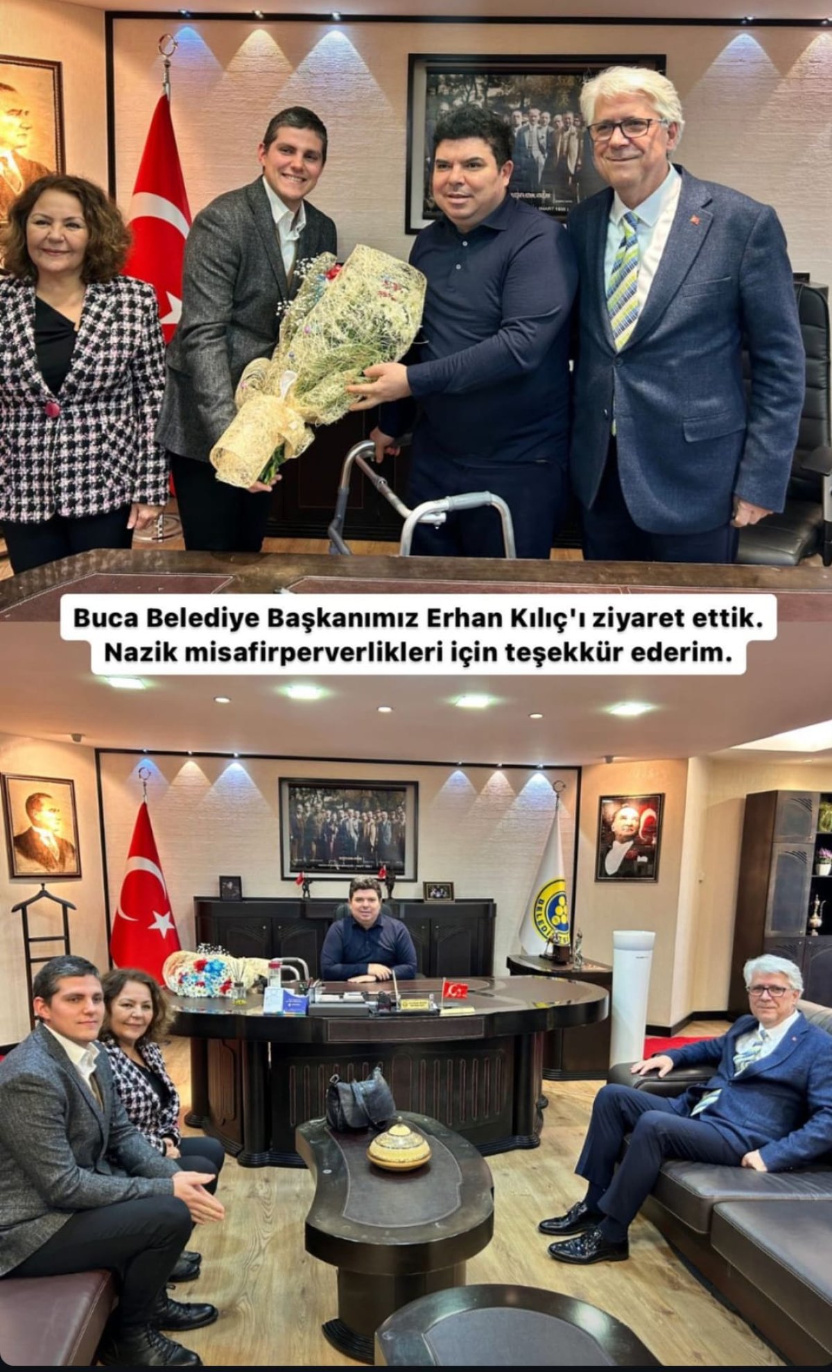 Cumhur İtifakı Buca Belediyesi başkan adayı Adnan Öztekin, Buca Belediyesi başkanı Erhan Kılıç'ı makamında ziyaret etti. Ziyareti samimiyetle karşılanan sayın Öztekin, misafirperverliğinden dolayı sayın Erhan Kılıç'a teşekkür etti.