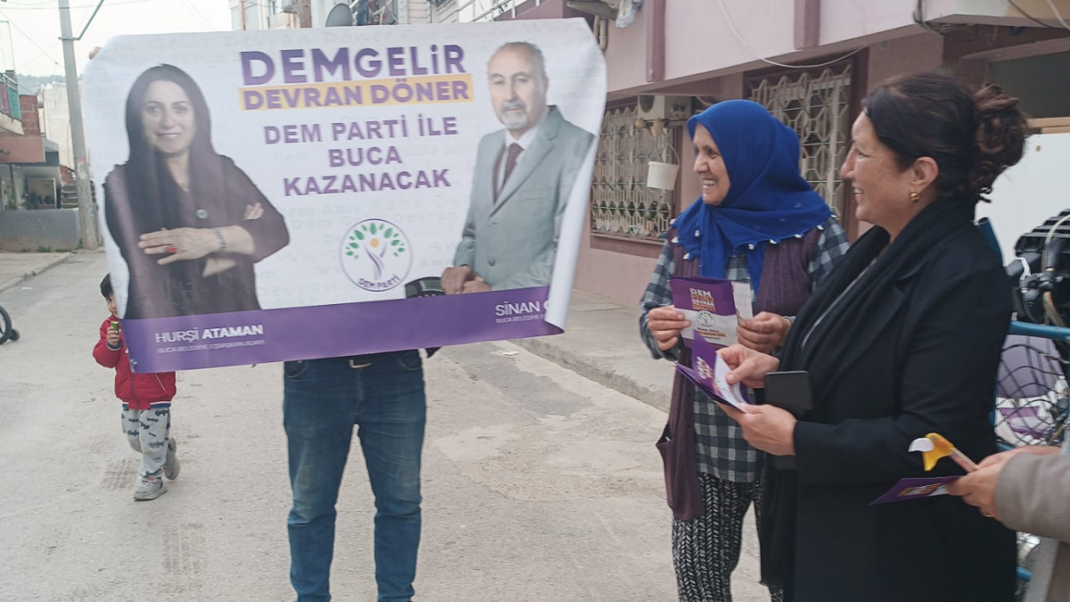 DEM Partisi Buca Belediyesi Eşbaşkan Adayları Nurşen Ataman ve Sinan Uğur, İzmir Büyükşehir Belediyesi Eşbaşkan Adayları Türkan Aslan Ağaç ve Akın Birdal, Buca'ya ve Tüm İzmir'e halkın yönetimde olduğu, eşit ve özgür bir şehir için sandığa gitmelerini ve iradelerine sahip çıkmalarını istedi.