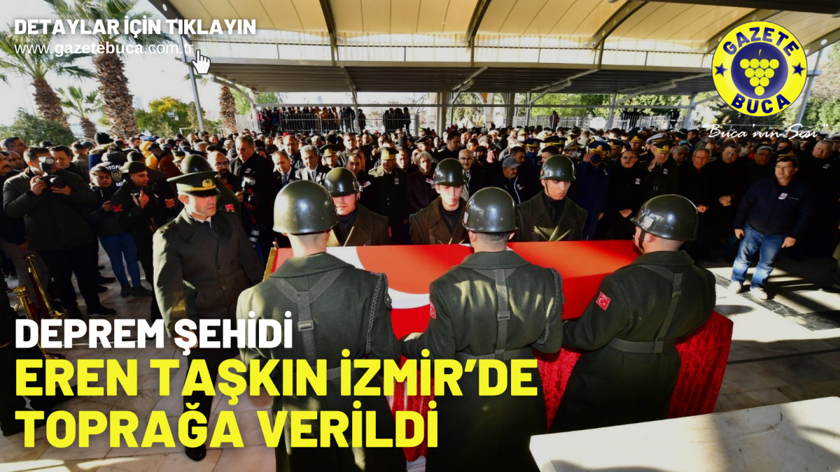 10 ili etkileyen deprem felaketinin Hatay’da askerlik yaparken yaşamdan ayırdığı İzmirli piyade er Eren Taşkın için Karşıyaka Beşikçioğlu Camii’nde tören düzenlendi. Törene şehidin annesi Dursune Taşkın ile kız kardeşi Ece Taşkın’ın yanı sıra İzmir Valisi Yavuz Selim Köşger, İzmir Büyükşehir Belediyesi Başkan Vekili Mustafa Özuslu, CHP İzmir Milletvekili Kamil Okyay Sındır, Ege Ordusu Komutanı Korgeneral Kemal Yeni, İzmir İl Emniyet Müdürü Mehmet Şahne, siyasi parti temsilcileri, yurttaşlar ve şehidin yakınları katıldı. Eren Taşkın’ın cenazesi Kadifekale Şehitliği’ne defnedildi.