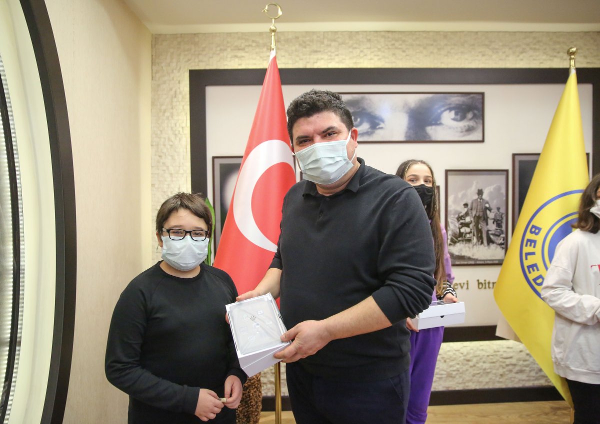 Dereceye giren öğrencilere ödüllerini Başkan Kılıç verdi