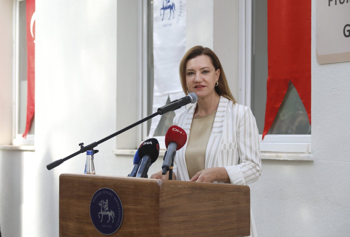 Törenin açılışında konuşan DEÜ Rektörü Prof. Dr. Nükhet Hotar, Dokuz Eylül Üniversitesi deyince akıllara ilk gelenlerden birinin DEÜ Araştırma Uygulama Hastanesi olduğunu belirterek, “Doğal olarak hastanemizden beklentiler artıyor ve sağlık alanındaki başarılarımızla dünyanın dikkatini çekiyoruz. Biz de yönetim olarak mesaimizin büyük bir bölümünü Araştırma Uygulama Hastanemize, Tıp Fakültemize ayırıyor; sağlıkta yaptığımız öncü çalışmalara yenilerini eklemek için çaba sarf ediyoruz. Örneğin geçen ay kendi Oksijen Üretim Merkezimizi kurduk. Oksijenin kilogramını 6 liraya alırken şimdi 1,5 liraya mal etmeye başladık. Biz bir kamu kurumuyuz ve devlet üniversiteyiz. Bu güzel yatırımlarımızın hastalarımıza şifa olması için hep birlikte el ele vermiş durumdayız. Araştırma Üniversitesi olmamızla birlikte gün geçtikçe daha da başarılı işlere imza atacağız. Hasta memnuniyetini artırarak ve çalışanlarımızın koşullarını iyileştirerek ülkemize hizmete devam edeceğiz” dedi.