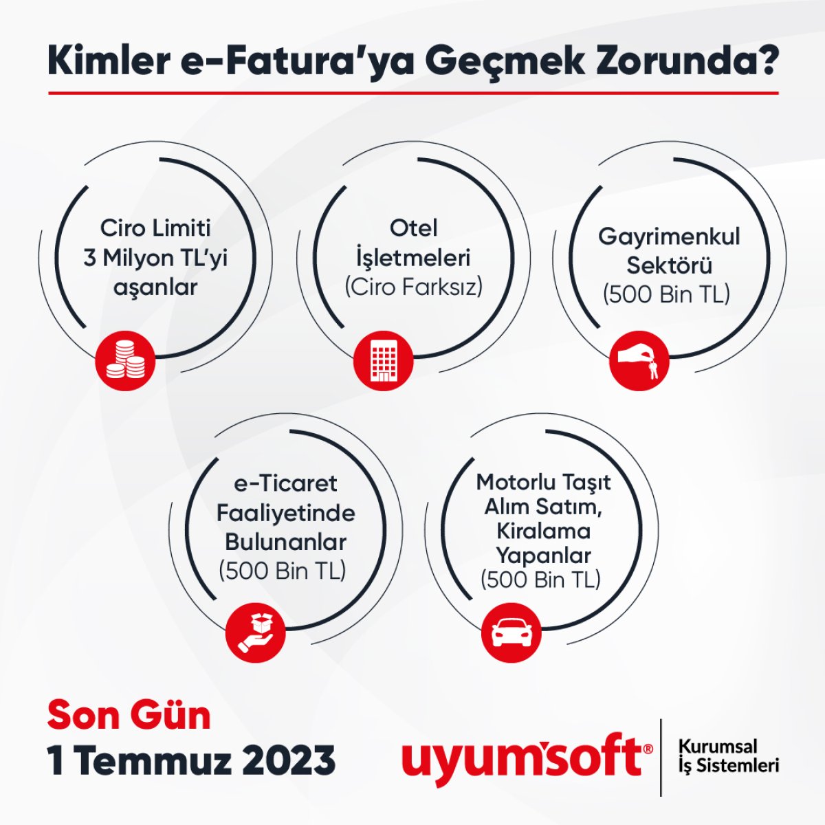“Türkiye olarak, e-Belge (e-Fatura, e-Arşiv, e-Defter, e-İrsaliye gibi) uygulamalarına geçişte dünyada örnek ülke olarak gösterileceğimiz bir başarıya imza atıyoruz. e-Fatura kullanan 880 bini aşkın işletme sayısı, 1 Temmuz geçişleriyle birlikte 1 milyon firmayı aşacak. Bu sayının içindeki yaklaşık 500 bin firma, e-fatura, e-arşiv fatura, e-defter, e-irsaliye dahil e-Belge uygulamalarının hemen hemen hepsini kullanıyor olacak. Artık, e-belge uygulamaları tartışma konusu olmaktan çıkarak, şirket yöneticileri, mali müşavirler ve herkesin kullanmak isteği dijital dönüşüm uygulamaları arasındadır. Uyumsoft olarak, e-Belge uygulamalarındaki ürünlerimiz ve verdiğimiz hizmet kalitemiz ile lider özel entegratörlerin arasındayız.” diye konuştu.