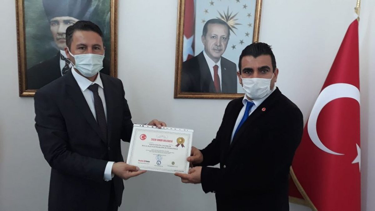 Buca ilçe kaymakamlık persoli Sayın Engin Çalışkan' a başarılı çalışmalarından dolayı onur belgemizi takdim ettik.