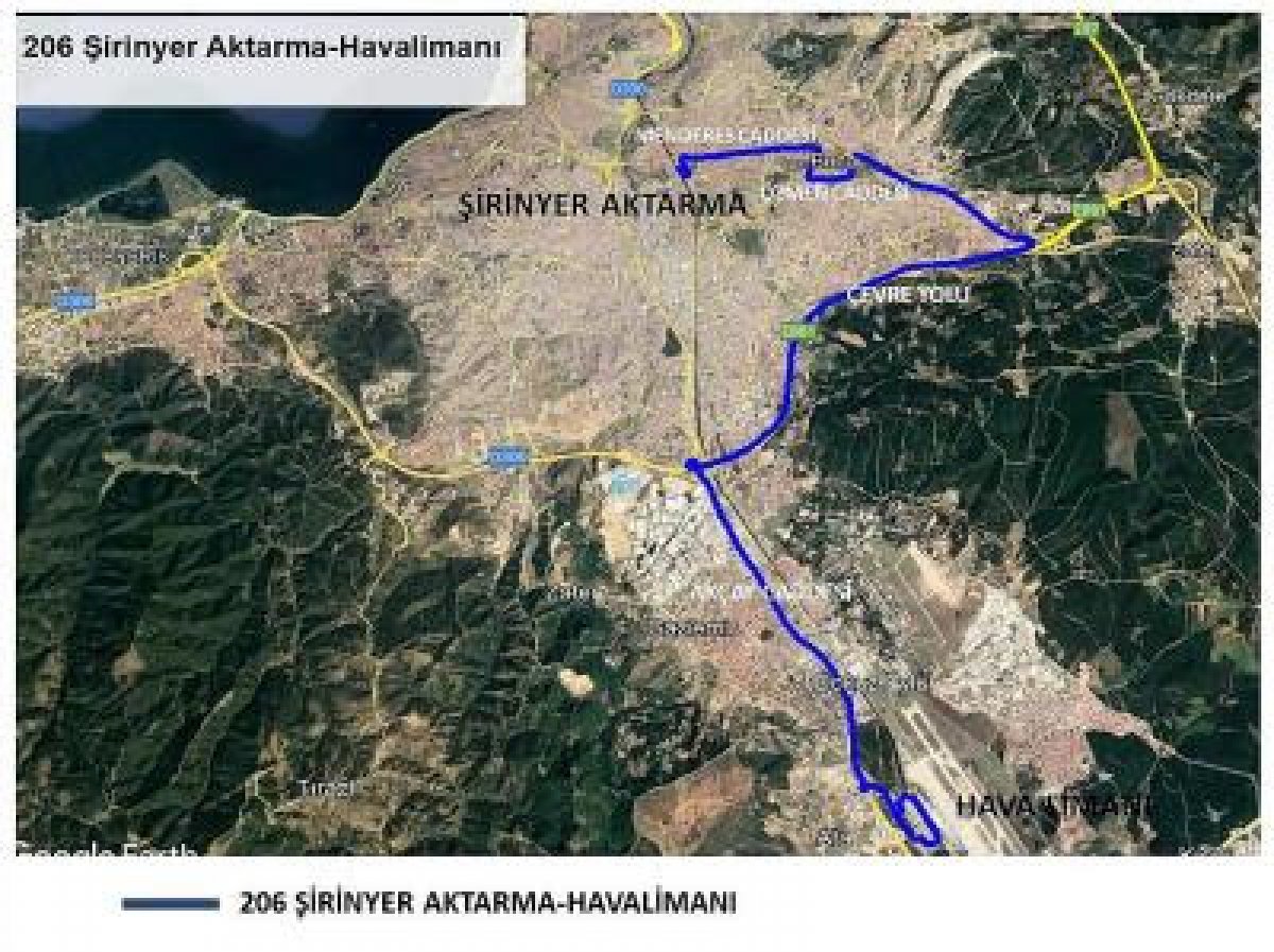 Buca bölgesi sakinlerinden gelen yoğun talep üzerine, Şirinyer Aktarma Merkezi’ni, Adnan Menderes Havalimanı’na bağlayacak 206 numaralı Şirinyer Aktarma – Havalimanı hattı oluşturuldu. Ulaşım Koordinasyon Merkezi (UKOME) tarafından onaylanan yeni hatta, her gece 00.30 – 06.00 saatleri arasında, 120 dakika ara ile hizmet verilecek. Otobüsler, yaklaşık 23 kilometreyi bulan Cemil Şeboy Caddesi – Mehmet Akif Caddesi – Menderes Caddesi – Uğur Mumcu Caddesi – Özmen Caddesi – Kıbrıs Caddesi – Erdem Caddesi – Doğuş Caddesi – İzmir Çevre Yolu – Akçay Caddesi güzergâhında çalışacak.