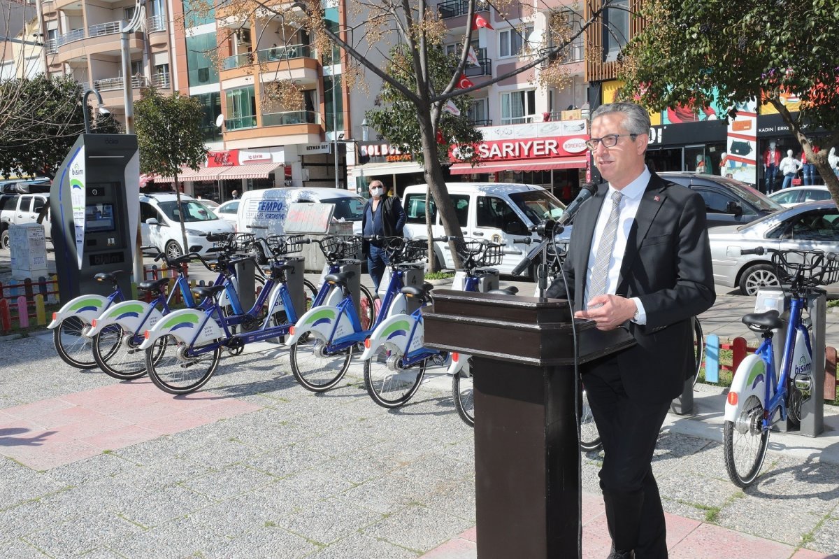 BİSİM istasyonlarında yaşama geçirilen QR kod ile temassız kiralama sisteminin ilk defa Gaziemir’deki istasyonlarda kullanıldığını anlatan Başkan Arda, ilçeye yeni bisiklet yollarının kazandırılacağının da bilgisini paylaştı.