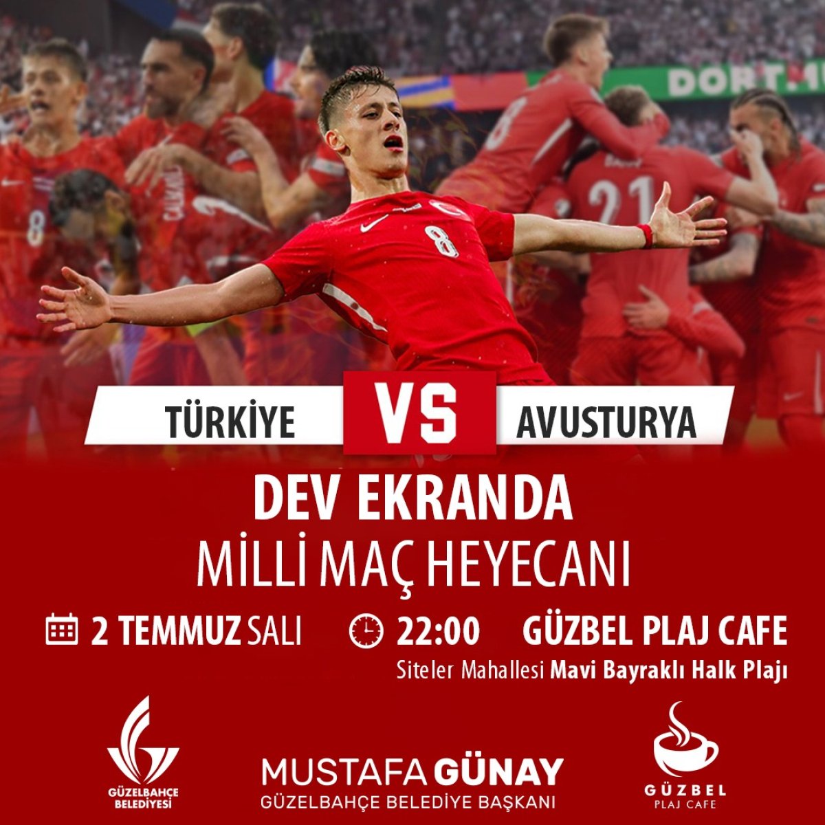 Güzelbahçe Belediye Başkanı Mustafa Günay, A Milli Takımı’mızın Salı (yarın) günü saat 22:00’de oynayacağı Türkiye – Avusturya maçını Siteler Mahallesi Mavi Bayraklı Plaj’da bulunan Belediye Güzbel Plaj Cafe’de birlikte izlemeye davet etti.