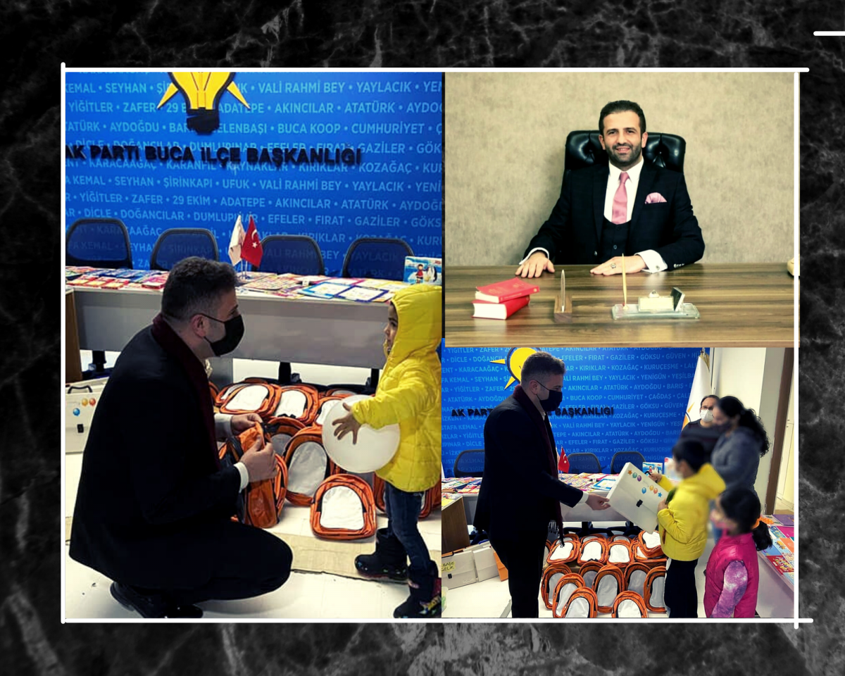 Ak Parti Buca Teşkilatı olarak ; Buca İlçe Başkanı Sn. Av. Hakan Kalfaoğlu öncülüğünde başlatılan “Dünyayı Boyuyorum” kampanyasıyla pandemiden dolayı okullarına gidemeyen okul öncesi Ve ilköğretim okuyan çocuklarımıza çanta,boya,boyama kitapları ve hikaye kitapları dağıtıp o güzel dünyalarını renklendirdi.