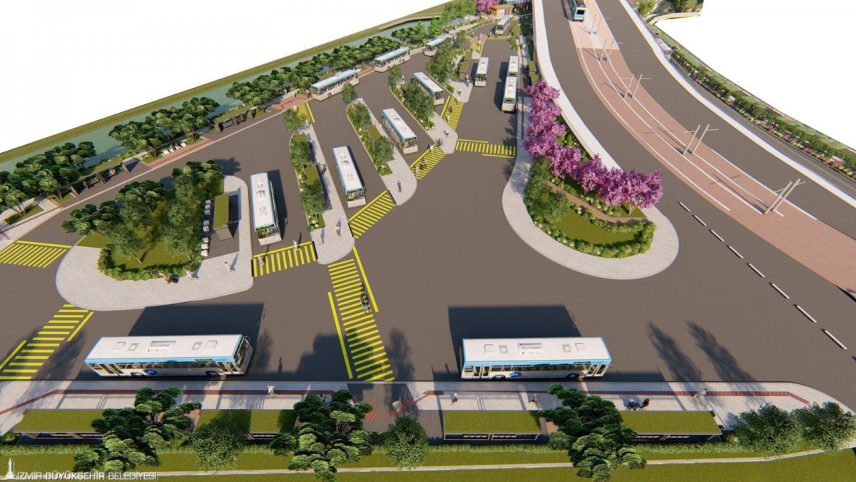 Tramvaya giden yaya yolu genişletecek ve gölgelik yapılacak. Yönlendirme, aydınlatma elemanları ile yaya ulaşımının güvenliği ve konforu artacak. Yeşil alan düzenlemelerinde hava kirliliğini azaltmak amacıyla az bakım gerektiren, karbon tutuculuğu yüksek bitki türleri kullanılacak. Otobüs durakları ve otobüs aktarma merkezi İzmir Büyükşehir Belediyesi’nin Doğayla Uyumlu Yaşam Stratejisi doğrultusunda sürdürülebilir, doğa esaslı çözümlerle düzenlenecek. İklim krizine karşı kenti dirençli hale getirmek için çalışmalarını sürdüren İzmir Büyükşehir Belediyesi, otobüs duraklarında Yeşil Durak uygulaması yapacak. Durakların arkasında yeşil cepler yapılacak ve bu ceplere ağaçlar dikilerek gölge alanlar oluşturulacak. Otobüs aktarma merkezi yeşil alanları, dinlenme ve bekleme alanları ile kentlinin yaşam kalitesini yükseltecek şekilde düzenlenecek.