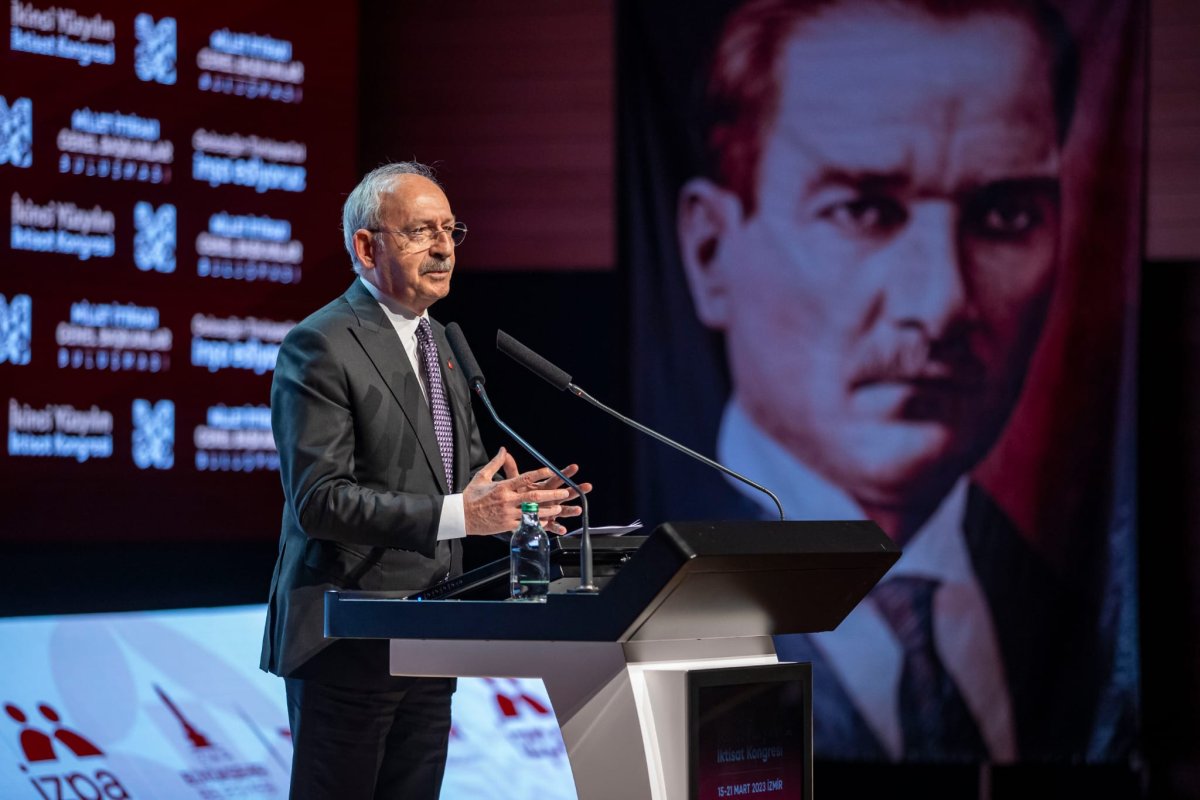 Kemal Kılıçdaroğlu, “İşimizin çok kolay olduğunu kimse düşünmesin ama birinci yüzyılın kongresinde de o dönemin liderleri işlerinin çok kolay olmadığını biliyorlardı. Güzel bir Türkiye, barış içinde bir Türkiye, kalkınan ve büyüyen, bölgesinde ve dünyada saygınlığı olan bir Türkiye. Hepimizin idealinde olan bir Türkiye. Zor zamanlardan geçtiğimizin farkındayım. Atatürk’ü hep iki temel ilkeyle anarım. Biri siyasi bağımsızlık. ‘Özgürlük ve bağımsızlık benim karakterimdir’ der. ‘Bayrağımın altında özgürce yaşamak isterim’ der. İkinci ilkesi ise ekonomik bağımsızlıktır. İzmir’de 100 yıl önce yapılan kongrede Gazi Mustafa Kemal Atatürk şöyle söyler: ‘Siyasi ve askeri zaferler ne kadar büyük olursa olsun iktisat zaferleriyle taçlandırılmazlarsa elde edilen zaferler sürüp gidemez, söner.’ Yani siyasi bağımsızlığın kalıcılığını sağlayan temel unsur ekonomik bağımsızlıktır. Bugüne kadar büyük sıkıntılar çektiğimizi biliyoruz. Ama öyle bir sistem kuralım ki kim iktidara gelirse gelsin bu tür krizlerle Türkiye karşı karşıya kalmasın” dedi.