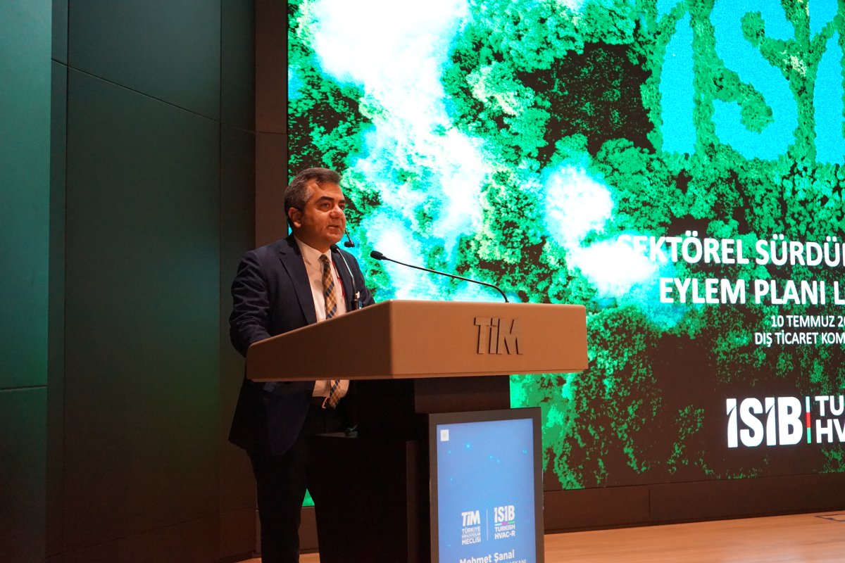 İklimlendirme Sektörü Sürdürülebilirlik Eylem Planı lansmanının açış konuşmasını yapan Mehmet Şanal; “Bilindiği üzere dünyanın işleyişine dair mevcut koşullar devam ettiği takdirde, birçok kaynağın tükeneceği ya da bu kaynaklara daha da sınırlı erişimin olacağı bir gelecek bizi bekliyor. İklim değişikliğinin son derece ciddi ekonomik, politik, sosyal ve toplumsal yansımaları olacak. İklimde yaşanan değişikliğin kabulü ve bunun sonucunda iklim değişikliği ile mücadele, 50 yıla yakın bir süredir ağırlığı değişmekle birlikte ülkelerin, toplumların ve bireylerin gündeminde. Ancak süreç, son düzlükte farklı bir boyuta taşındı. 2015 yılında Birleşmiş Milletler tarafından açıklanan Sürdürülebilir Kalkınma Amaçları ve 2019 yılında Avrupa Yeşil Mutabakatı ile hızlanan iklim mücadelesi hareketi, dünyanın genelinde iktisadi, politik, sosyal konularda tüm başlıkları şekillendirdi. İSİB olarak bugüne kadar bu sürecin inşa edildiği dönemi yakından takip ederek sektörümüzü bilgilendirmeye çalıştık. Ancak yeni sürecin hem sektörümüze hem de ülkemize yükleyeceği sorumlulukları daha iyi analiz edebilmek için kapsamlı bir çalışma yapmamız gerekiyordu. Sektör olarak bu değişim sürecini sistematik ve gerçekçi bir şekilde hayata geçirebilmek ve ortaya çıkacak yeni olanaklardan faydalanabilmek için süreci takip etmenin ötesinde yeni adımlar atmamız zorunlu hale geldi. İklimlendirme Sektörü Sürdürülebilirlik Eylem Planı’nı tam da bu gerekçe ve değerlendirmelerin bir çıktısı olarak kamuoyu ile paylaşıyoruz” dedi.