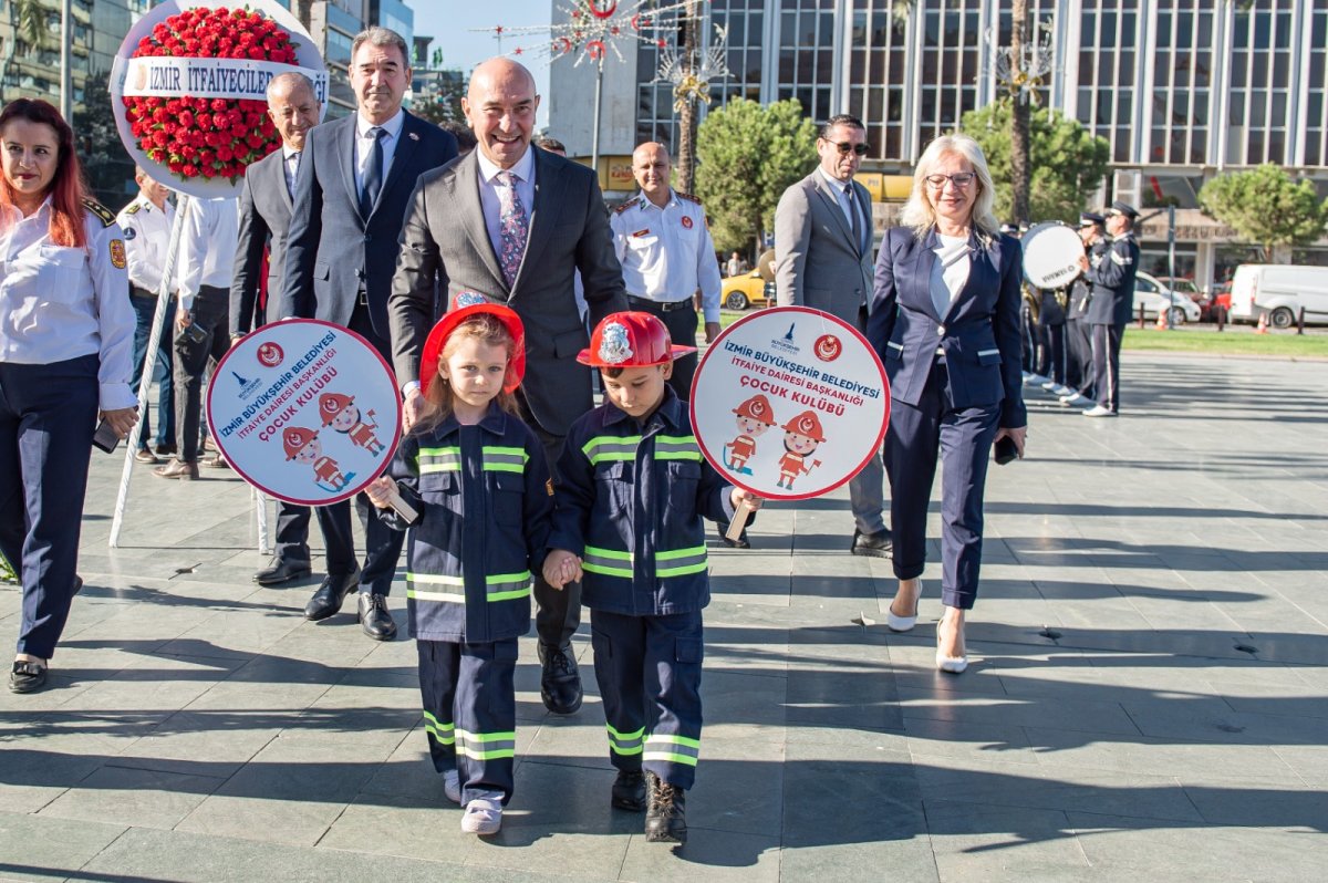 İzmir Büyükşehir Belediyesi İtfaiye Dairesi Başkanlığı, İtfaiye Teşkilatı’nın 99’uncu kuruluş yıldönümü nedeniyle Cumhuriyet Meydanı'nda tören düzenledi. İzmir Büyükşehir Belediye Başkanı Tunç Soyer’i alana gelişte Çocuk Kulübü üyesi 5 yaşındaki Beren Karaduman ile 4 yaşındaki Sercan Bıçakçı karşıladı. Atatürk Anıtı'na çelenk sunulmasıyla başlayan törene İzmir Büyükşehir Belediye Başkanı Tunç Soyer, CHP İzmir Milletvekili Atila Sertel, İzmir Büyükşehir Belediyesi Genel Sekreter Yardımcısı Şükran Nurlu, İzmir Büyükşehir Belediyesi İtfaiye Dairesi Başkanı İsmail Derse ile belediye bürokratlar ve itfaiye personeli katıldı.