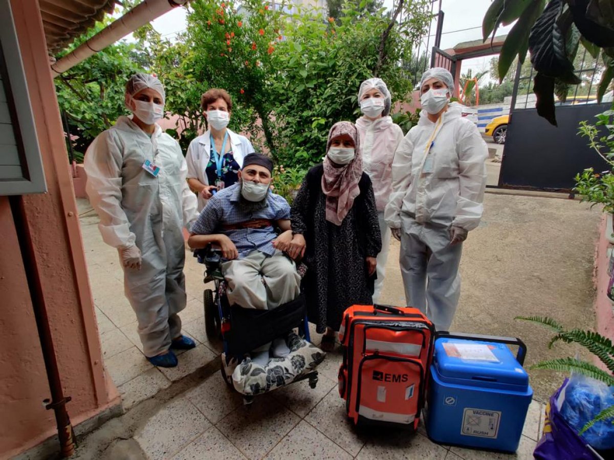 İl Sağlık Müdürlüğü bünyesinde kurulan ekipler, evlerinden çıkamayan tam bağımlı, orta düzey ve ağır engelli vatandaşların ikametlerine giderek Sinovac aşısını uyguluyor. Buca ilçesinde oturan ve geçirdiği kas hastalığının ardından 30 yıldır yaşamını tekerlekli sandalyede sürdüren 52 yaşındaki Muhittin Altınsoy'un Kovid-19 aşısı yapıldı. İlçe Sağlık Müdürlüğü görevlileri, aşı öncesi Altınsoy ve 90 yaşındaki annesi Ayşe Altınsoy'u bilgilendirdi.Anne Altınsoy, AA muhabirine, Kovid-19 salgını başladığından bu yana tedbirlere uyduklarını söyledi.