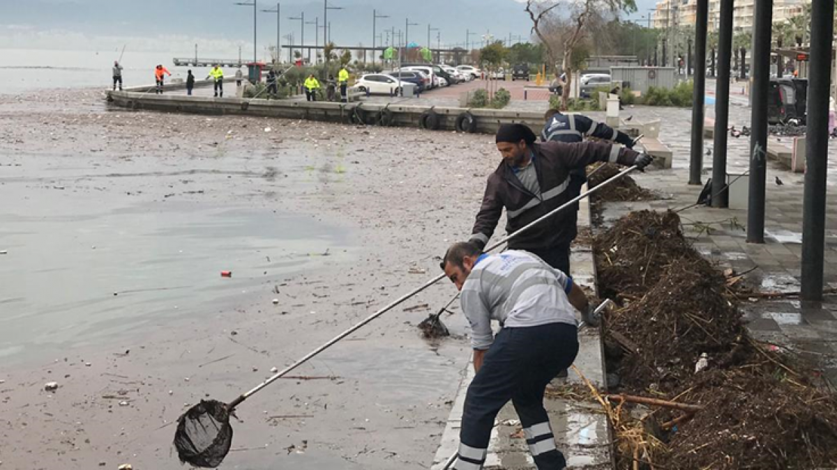 Körfez Denetim ekibi ise Körfez'e derelerden gelen yüzer çöpleri temizledi. Mavi Körfez 2 ve Mavi Körfez 3 deniz süpürge gemileri ve 15 kişilik kara çöp toplama ekibi, Bostanlı ve Karşıyaka’da 25 ton çöp topladı.