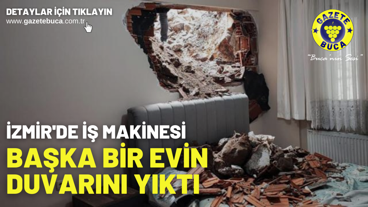 İzmir'in Konak ilçesinde iş makinesiyle yürütülen inşaat çalışması sırasında bitişik apartmandaki dairenin duvarına çarparak kısmen yıkılmasına neden oldu.