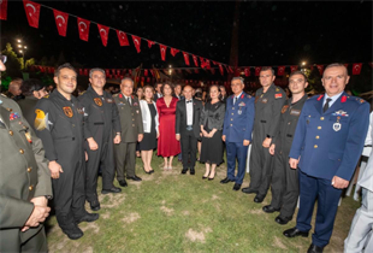 Resepsiyonda İzmir Büyükşehir Belediye Başkanı Soyer, Atlı Tören Kıtası Ekip Komutanı Yarbay Haluk Akdere’ye, Solo Türk Gösteri Ekibi adına Solo Türk Kol Komutanı Yarbay Emre Mert’e, Türk Yıldızları Akrobasi Timi adına Hava Pilotu Yarbay Mehmet Kemal Koyunluoğlu’na, plaket verdi. Solo Türk Gösteri Ekibi ise Başkan Soyer’e pilot kabinini ters açıdan görüntüleyen fotoğrafı, Türk Yıldızları Akrobasi Timi de gösterilerinden bir fotoğrafı hediye etti. Türkiye Harp Malulü, Gaziler, Şehit, Dul ve Yetimler Derneği İzmir İl Başkanlığı adına Başkan Tunç Soyer’e çiçek takdim etti.