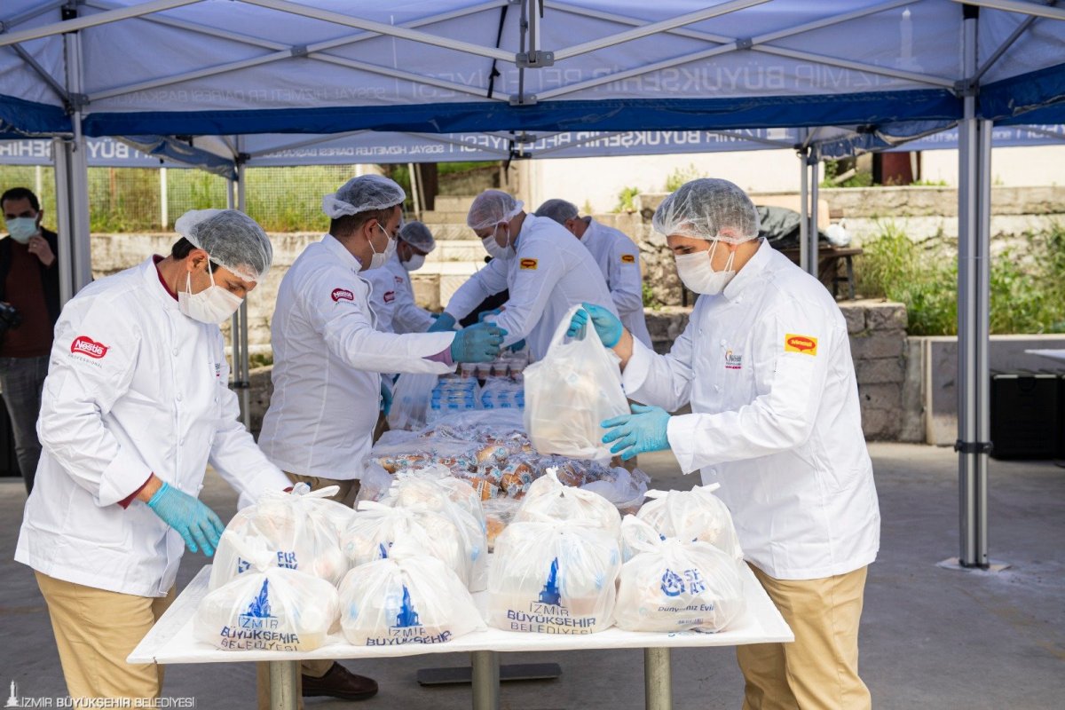 İzmir Büyükşehir Belediyesi, Ramazan ayıyla birlikte örnek bir dayanışma kampanyası başlattı. Pandemi nedeniyle kurulamayan iftar çadırlarının boşluğunu kapatmayı hedefleyen İzmir Büyükşehir Belediyesi, hijyen kurallarına uygun olarak hazırlanan ve kapalı kutulara konan yemek paketlerini belirlenen mahallelerde dağıtıyor. Kent genelinde Ramazan ayı boyunca toplam 400 bin kişilik iftar yemeği vermeyi hedefleyen Büyükşehir, 75 ekip, 150 personelle ihtiyaç sahiplerinin iftar yemeklerini kapılarına ulaştırıyor.