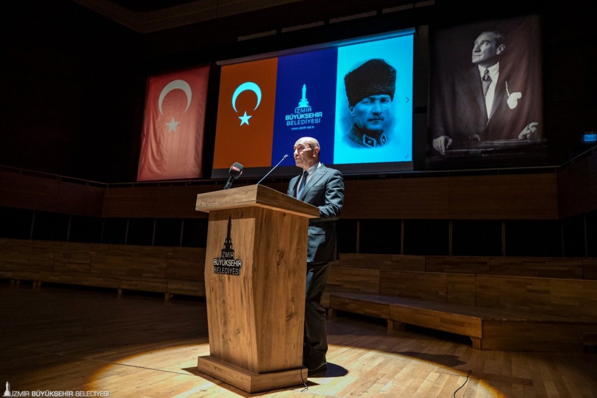 Gecede İzmir’in kurtuluşu ve 29 Ekim Cumhuriyet Bayramı’na dair konuşan Başkan Tunç Soyer, “Bugün, ‘İzmir’e Doğru: 9 Eylül’ belgesel filminin gösteriminde sizlerle beraber olmaktan mutluluk duyuyorum. İzmir’in 9 Eylül 1922’de kurtuluşu, Cumhuriyetimizin en önemli kilometre taşlarından biridir. 9 Eylül ve 29 Ekim, iki ayrı günden oluşan tek bir miladın tarifidir. O milat, özgür Türkiye Cumhuriyeti’nin kuruluşudur. Bu nedenle 9 Eylül belgeselinin ilk gösteriminin 29 Ekim’in öncesinde yapılması İzmir için özel bir anlam taşıyor” dedi.